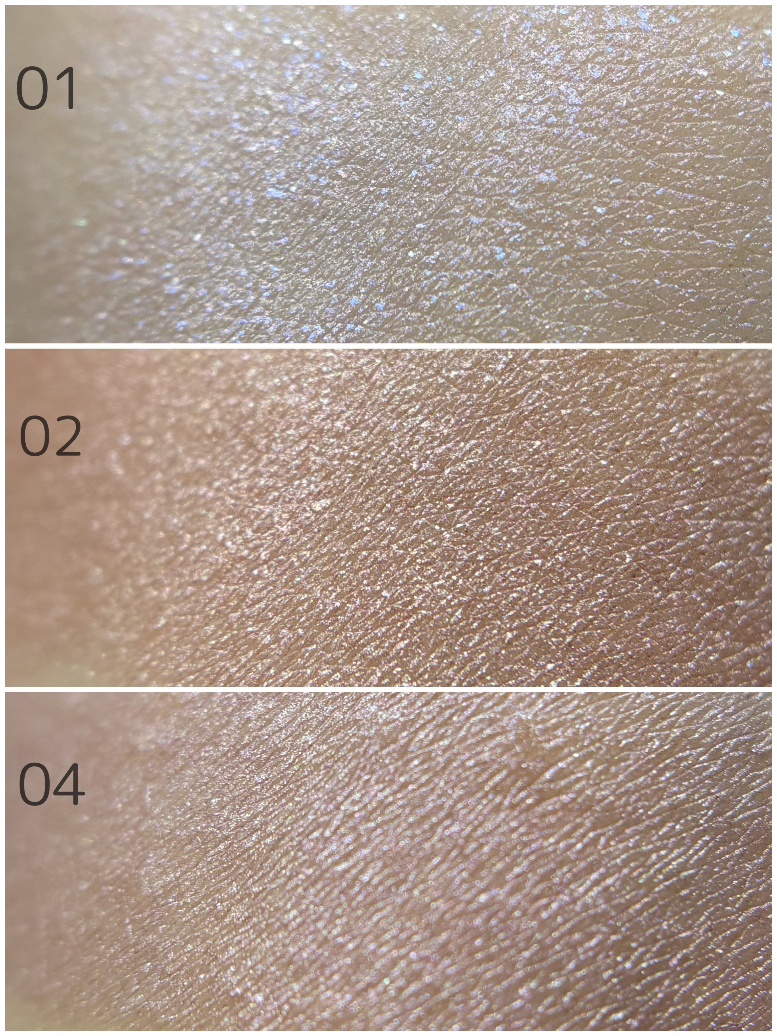 青ラメに心奪われた方、多いのではないでしょうか まばゆいんだけど大粒すぎないのでまぶた全体にベースのように仕込むと透明感爆誕します👶🏻 右上の赤が一見使いこなせるか不安だったけど、パキッとしてなくてシアーだから調整しやすい! スティックハイライトにありがちなペタっと質感は一切なく、パウダーのようにサラサラとした仕上がりです🫶🏻