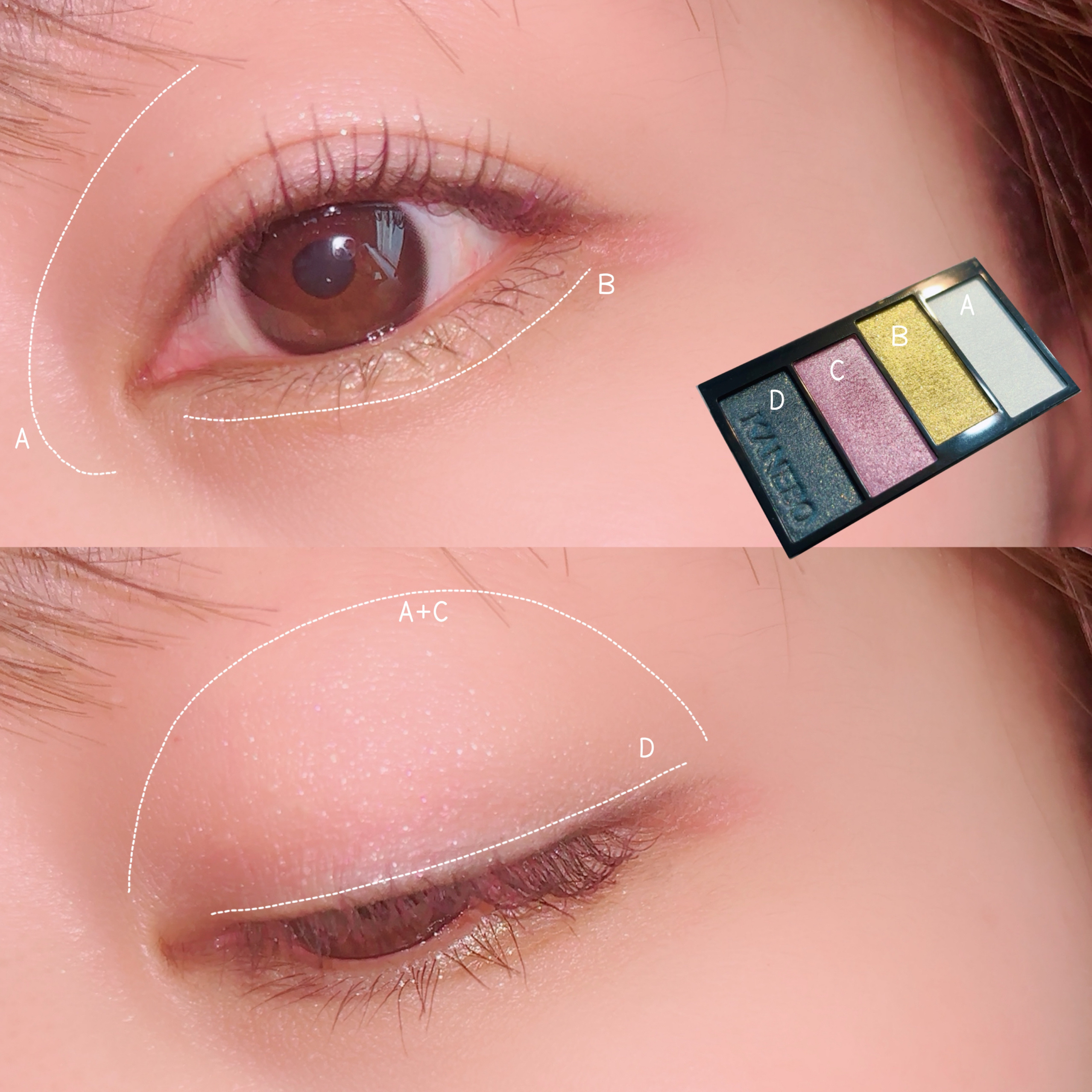 ラメがキラキラしていて、どの色も可愛かった。 EX 2の使い方は 1、ピンクをアイホール全体に塗り、下まぶたの外側から3分の2程度も載せる。2、右端のネイビーを上まぶたの目尻に 3、ホワイトも目頭から上まぶたに。4、イエローを目頭から下まぶたに。 とても綺麗なグラデーションができていて可愛かったです💕