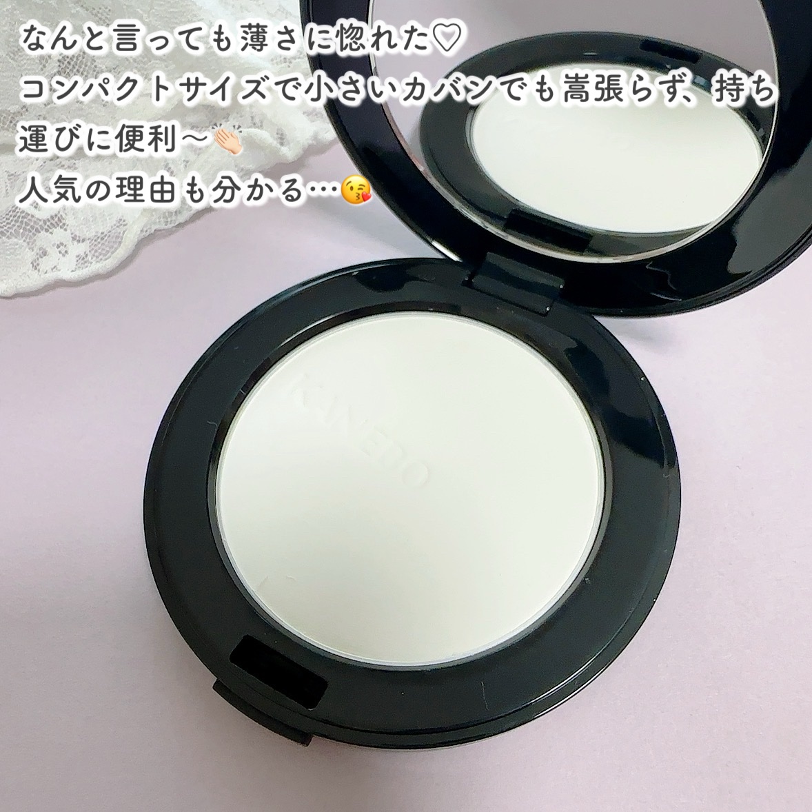 パウダーでありながら“粉っぽさゼロ”肌にのせた瞬間、ふわっと軽く広がるのに、仕上がりはしっとり。乾燥肌の私でも、時間が経ってもつっぱりにくく、皮脂と水分のバランスをほどよく保ってくれる感じがすごく心地いいです。特に印象的なのは、光のヴェールをまとったような透明感の出方。ギラつくわけでもなく、マット過ぎるわけでもなく、“素肌の質感を損なわずにレフ板効果を与える”ような、絶妙な仕上がりになります。毛穴もふんわりぼかしてくれるので、近距離でも肌がキレイに見えるのが嬉しい。写真を撮ると「いつもより肌が良く見える…!」と実感しやすいです📸✨また、崩れ方もとても上品で、テカりが出てもギラつかず、むしろツヤとして見えるため、化粧直しが少なく済むのも◎粉質がとても細かく、肌と一体化するようになじむので、ファンデの仕上げはもちろん、ノーファンデの日の“素肌仕上げフィルター”として使うのもおすすめです。デザインもカネボウらしいスタイリッシュさで、ポーチに入っているだけで気分が上がります💎透明感・上質さ・崩れにくさを同時に叶えてくれる、“ワンランク上の仕上がり”を求める人にぴったりのパウダーでした🌿✨