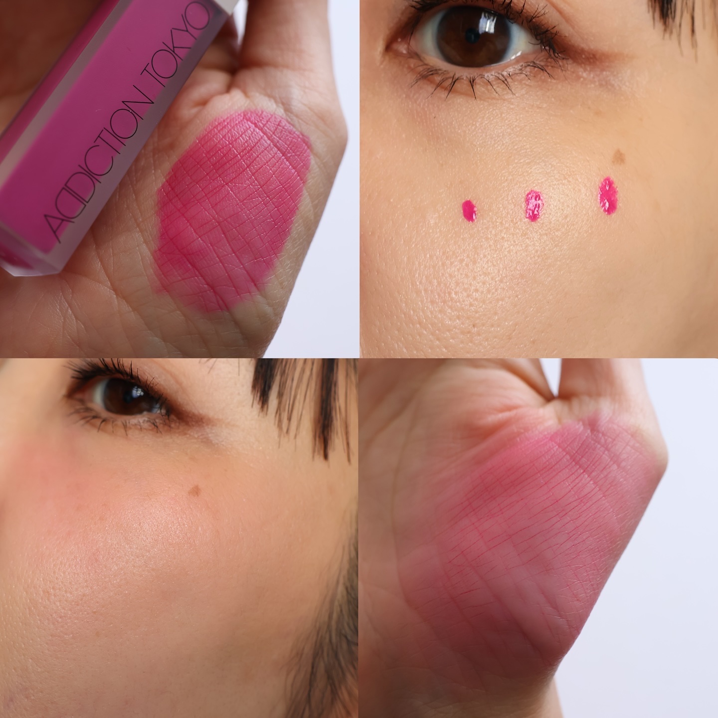 リキッドなのにパウダーに変わる、不思議な質感✨ NARSのアフターグロウリキッドブラッシュに出会って以降、リキッドチークにはまっています。 ADDICTIONのリキッドチークは、そういった失敗をしにくい仕様になっているそうです。アプリケーターで小量を直接肌に乗せ、指先でトントンと優しく広げていくと、簡単に綺麗にフワッと発色させることができます。 リキッドチークが苦手な人にもオススメしたい、すごく使いやすい商品です🥰 ちなみに、グロウタイプとフォギータイプの2種類があり、どちらも可愛いのですが、私はフォギータイプの方が肌が綺麗に見えるように感じました!