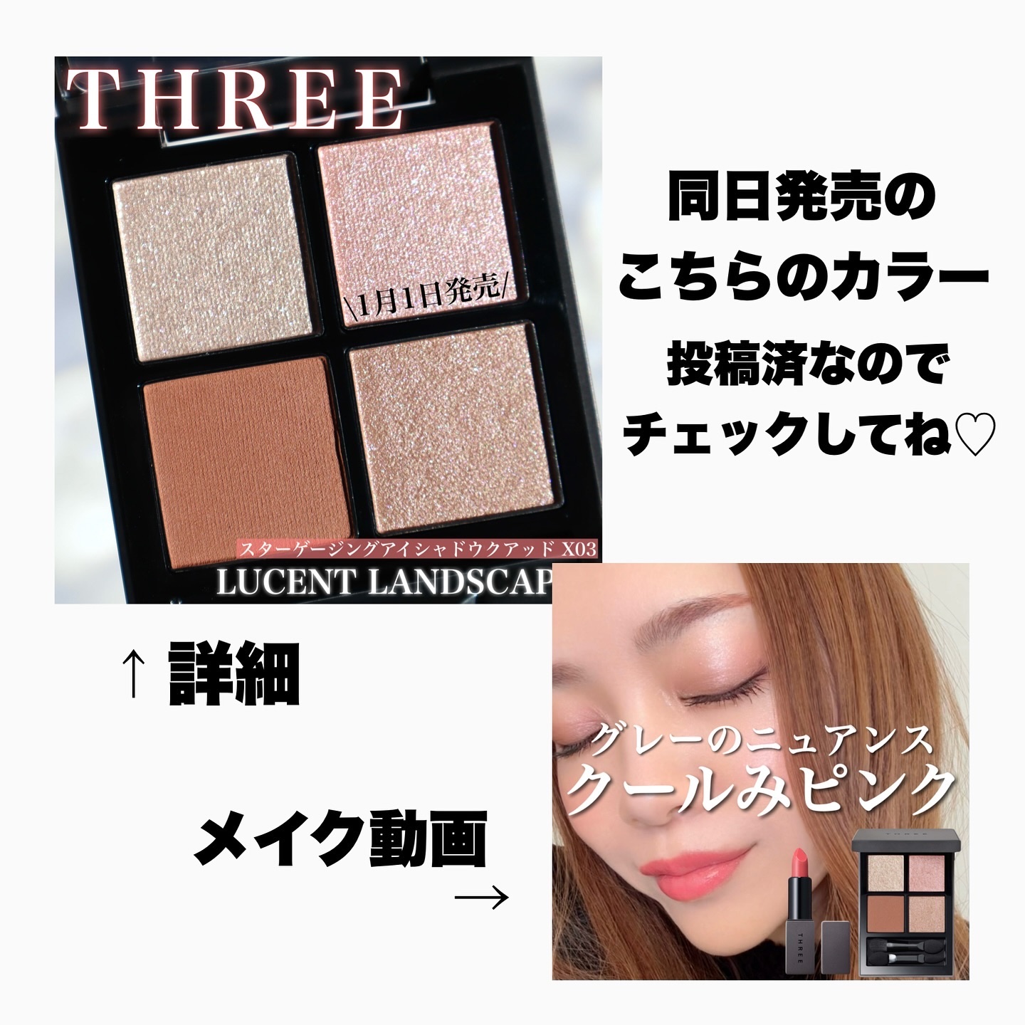 \1月1日全国発売🧡/THREEの春コレ2025!グレーのニュアンスがきいたアイシャドウたちが出る💕X03よりもこちらの方がグレーみは少なめな印象。でも暖色も強すぎなくてそのあたり雰囲気感じるかな!?ブルー&グリーンの偏光パールとグレーのニュ...