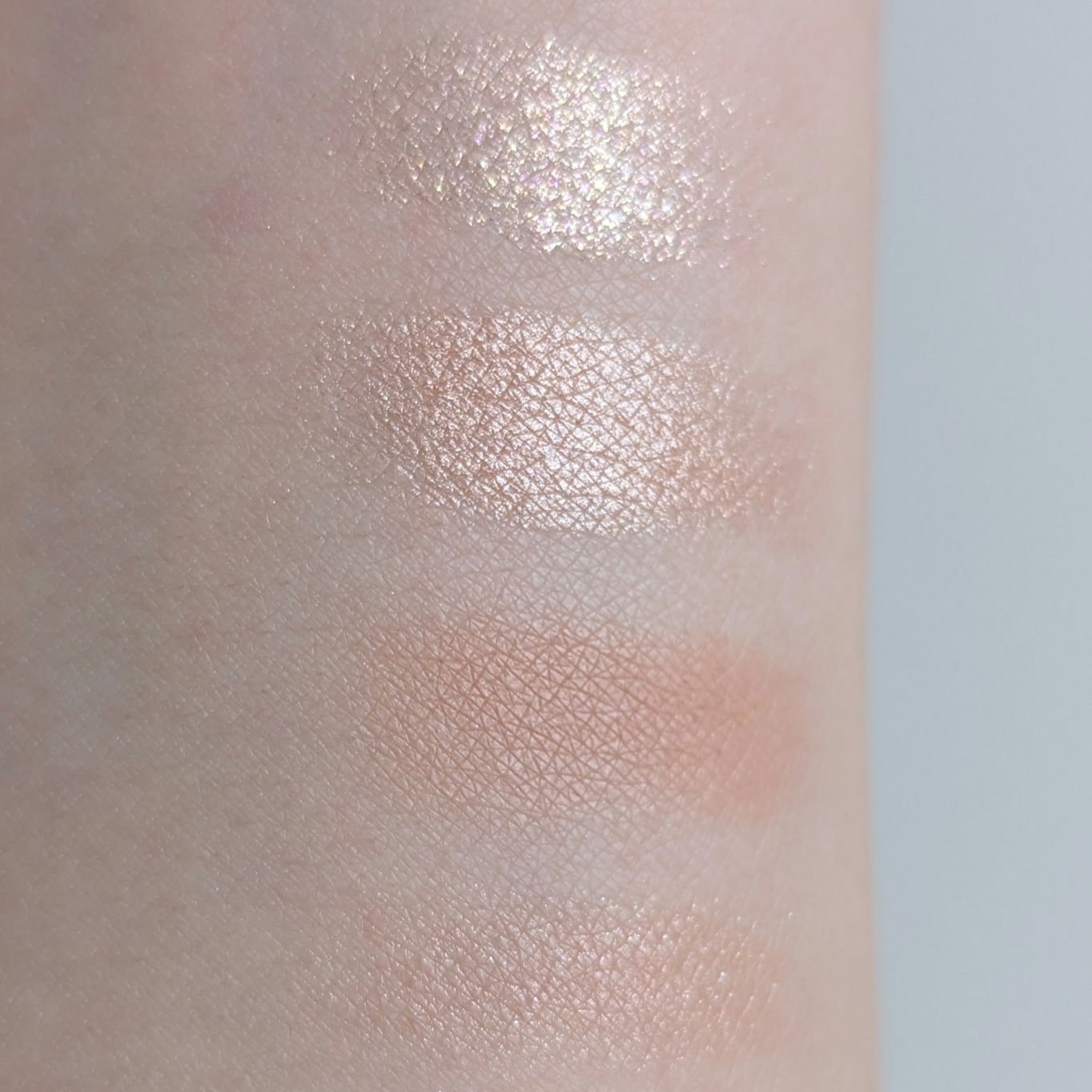 4つの質感が重なると目元に立体感と華やかさが生まれる。どちらの色も明るさと少しのトープ感があって今っぽい目元に仕上がるなぁと思った。 日常使いにぴったりなパレット。どちらの配色もすごく可愛いくて2色買いしました。