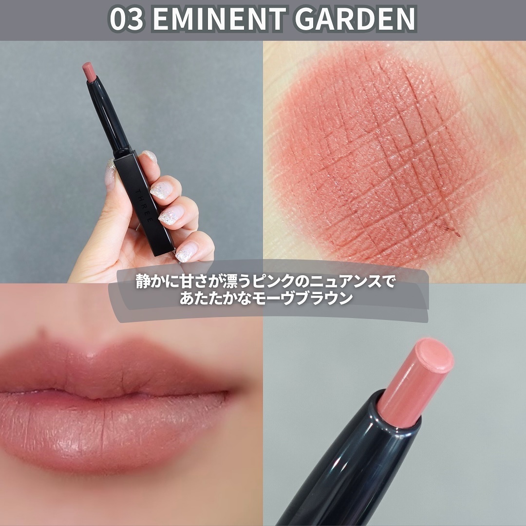 THREE ドリームオン アリューリング リルone ¥4,070 01 ETERNAL FLUX 02 DREAM OF YOU 03 EMINENT GARDEN 04 COOL COMMUNICATOR 05 DEEP THINKER 06 BEAUTIFUL KINGDOM 1月1日発売新作リップ