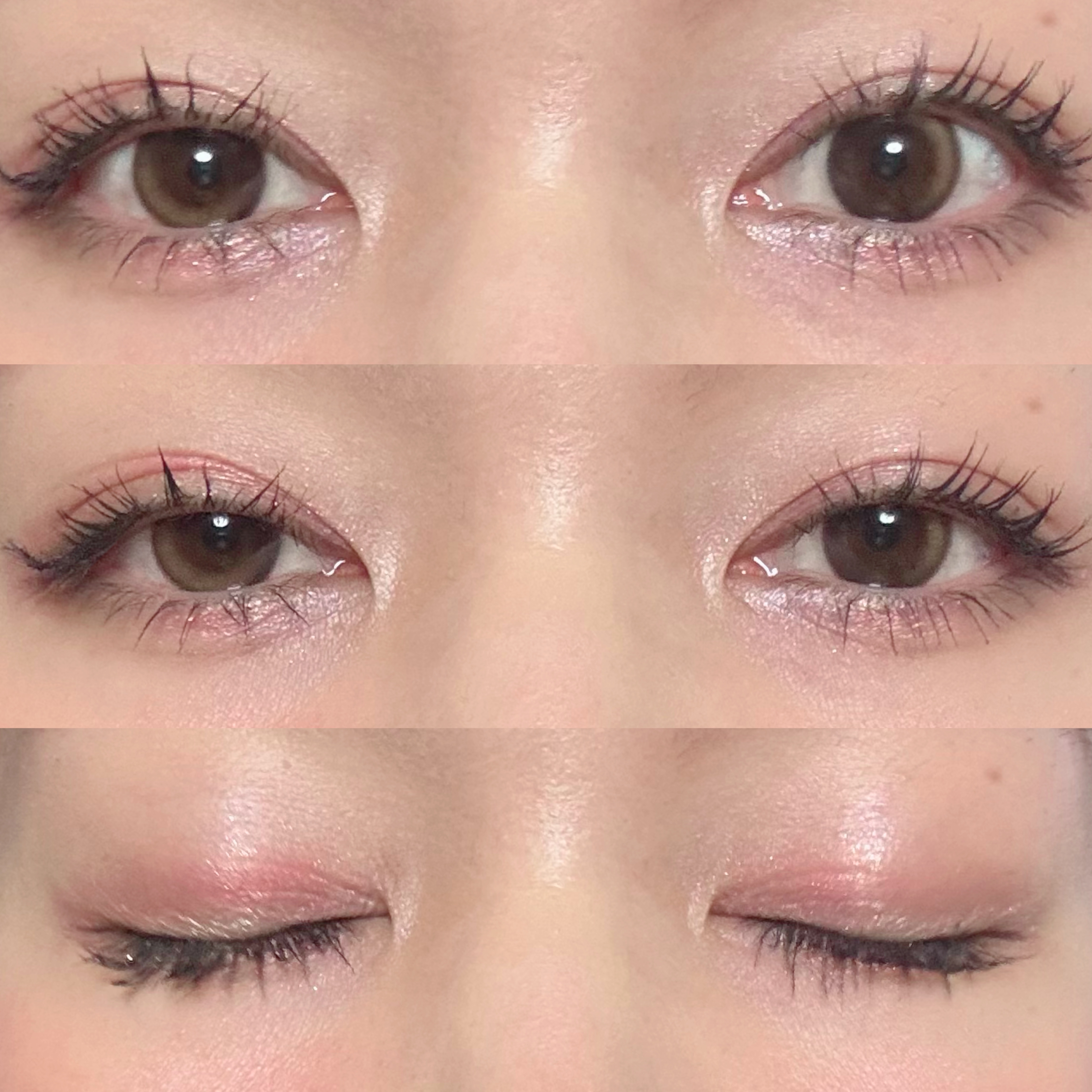 右のピンクが春らしいコーラルピンク。左はブラウンかな❔と思ったらゴールドラメが綺麗なシアーな色づきで使いやすい🥹 ジルらしい可愛らしさと春らしい華やかさが可愛い🌷