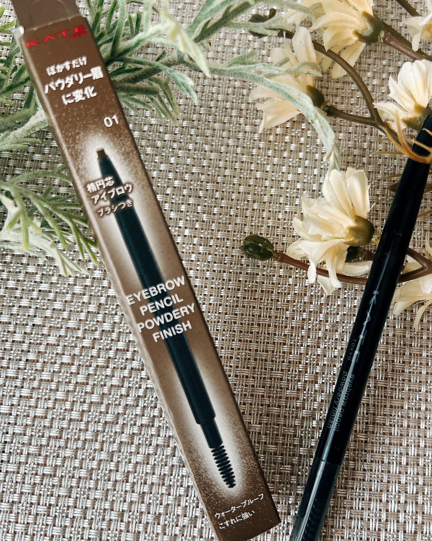 🌸ケイト アイブロウペンシル(パウダリーフィニッシュ)🌸4色展開で、01ソフトブラウン使用。(やや黄色味のあるブラウン)ペンシルとブラシが一体化タイプ。繰り出し式でサッと使いやすく便利👏楕円芯で、太さが調整しやすく目尻の細やかな部分も描きやすかったです。なめらかな描き心地で、ブラシでぼかすと、ふんわりパウダーな仕上がりに💓ウォータープール処方なので、汗をかく夏場にも活躍しそう🏖️描きやすく、馴染みやすいので初心者の方にもオススメ✨