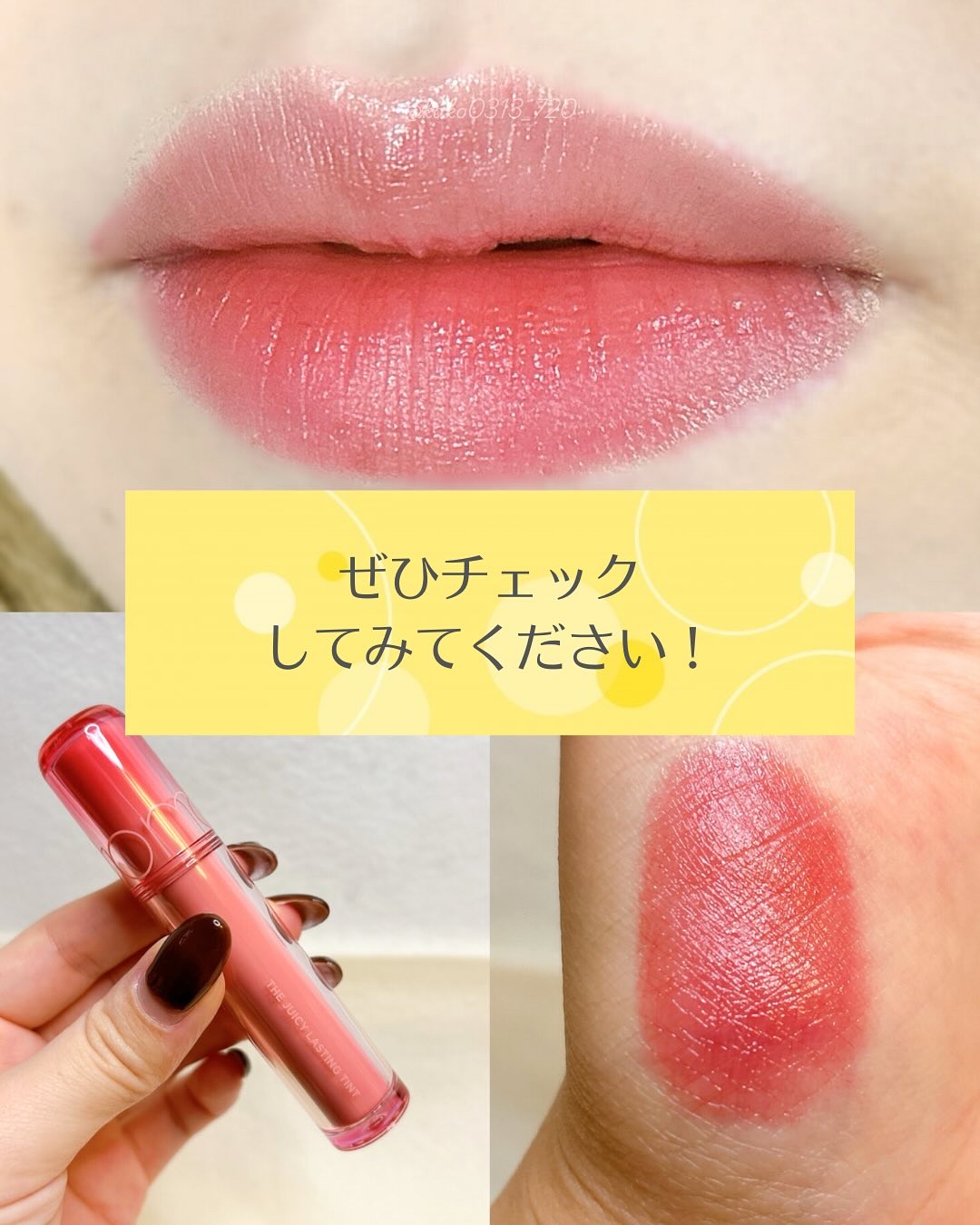 こんにちは♪今回の投稿がすこしでも参考になったら、【いいね】【フォロー】お願いします!┈┈┈┈┈┈┈┈┈┈Instagram☞@kako0313_720┈┈┈┈┈┈┈┈┈┈こんな悩みを持ってる方必見!・急いでるときどのコスメ使ったらいいかわからない・毎日可愛い色のリップをつけたいこういったことに悩みますよね?今回はそんなお悩みの方に、一重女イエベ春の私がおすすめする殿堂入りピンクティントをご紹介します!発色や仕上がりは個人差によりますのでご注意ください!今回の投稿で少しでもこのアカウントを気に入ってくださると嬉しいです!ーーーーーーーーーーーーーーーーーーーこのアカウントは一重女子の私がコスメやスキンケアなどを発信しています☆気になっている方、少しでも参考になれたら嬉しいです♪参考になる!共感できる!と思ったら【フォロー】してみてくださいね🥰┈┈┈┈┈┈┈┈┈┈↓他の投稿はこちら💁♀️Instagram☞@kako0313_720┈┈┈┈┈┈┈┈┈┈ーーーーーーーーーーーーーーーーーーーお読みいただき、ありがとうございます😊コレからも美容を楽しんでいきましょう💫#ロムアンド#romand#ロムアンド新作#韓コス祭り#コスメ#コスメオタク#メイク#コスメ紹介#コスメレポ#コスメ好き#プチプラコスメ#韓国コスメ#化粧品#cosmetics#お気に入りコスメ#一重メイク#一重#一重女子#メイク用品#メイク講座#メイク大好き#春ポーチの必需品