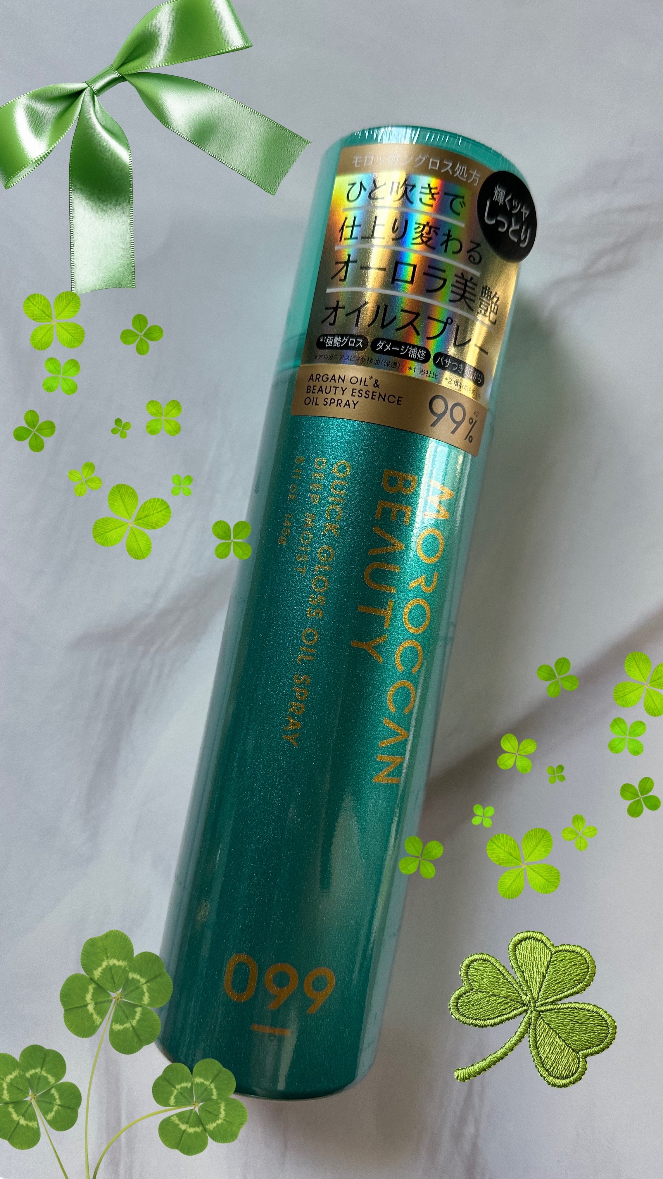 モロッカンビューティモロッカンビューティディープモイストクイックグロスオイルスプレー145g¥1,595アルガンオイル配合のオイルスプレー𓂃◌𓈒𓐍モロッコ産の美容オイル、オイルケラチン、セラミドなどの美髪成分でやわらかい質感とオーロラみたいなツヤに✨️カラーキープ成分も配合されてるのでヘアカラーの色落ち・退色を予防!ミストなので手を汚さず使えます𖠶ˬ𖠶香りはローズとカシスのプリズムローズでそこまで強い香りではないので苦手な方でも使いやすそうな感じです(¯﹀¯)主に出かける前に使用してますが手軽に使えてツヤっぽくなりすぎない綺麗なツヤで指通りもサラサラになり凄く使いやすいです(⁎⁍̴̛ᴗ⁍̴̛⁎)