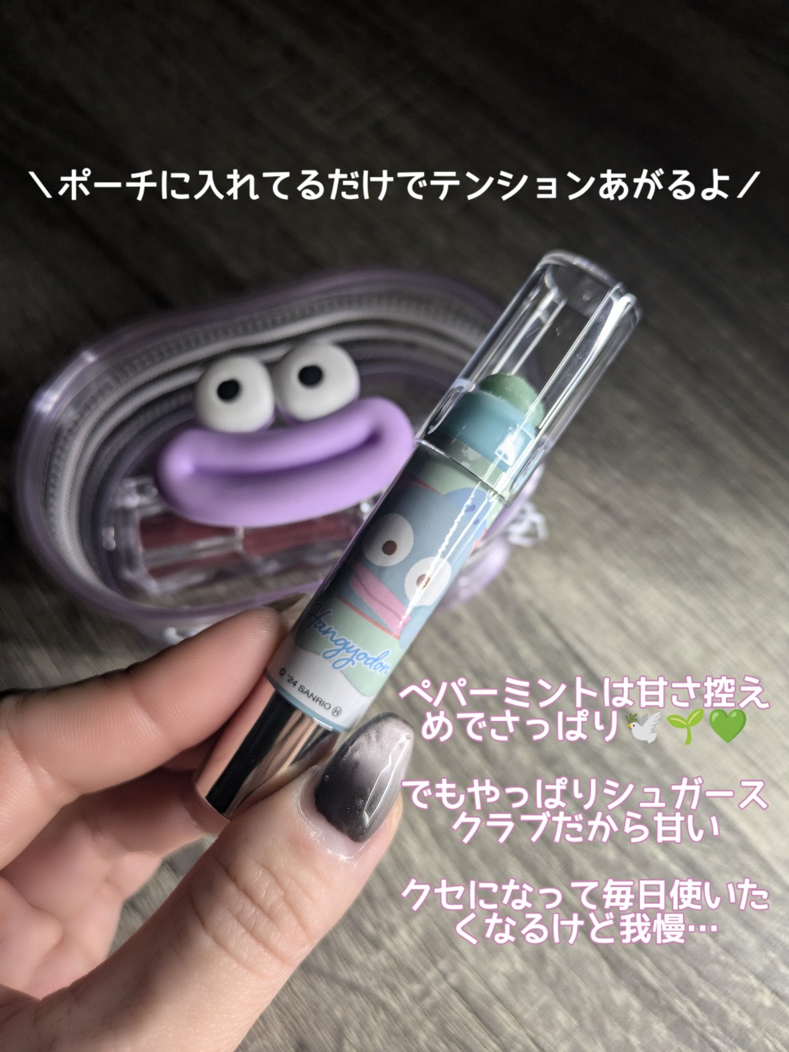 レブロンさんから、サンリオ特別パッケージのリップスクラブが出たということで、さっそく推しのハンギョドンくんのペパーミントを購入❣️ シュガースクラブなので多少はジョリジョリして痛いのを覚悟していましたが、とろけて包み込んでくれるような塗り心地で、痛みはほぼ無かったです🙆♀️ 他の香りも気になる〜💕 みんなも推し活で綺麗になろっ!!!