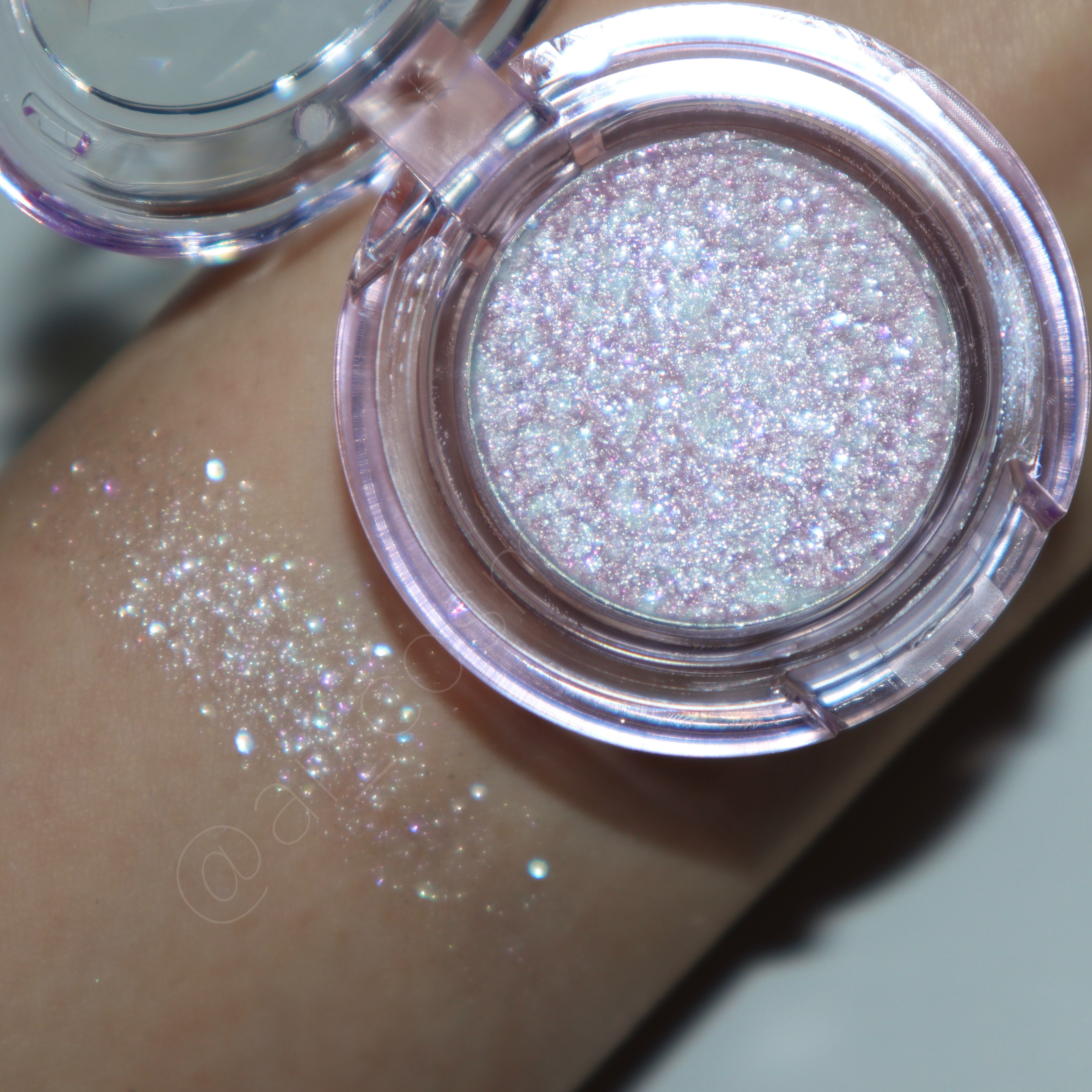 エチュードのキラめくニューイヤーコレクション『ルックアットマイアイズ“My Own Gemstone“』 “ピースオブアメジスト”はホワイト・ピンク・パープルの多彩なラメが混ざり合う透明感溢れるマーブルグリッター マルチテクスチャーで1つでアイシャドウだけではなくハイライトやチークとしても使える万能アイテム