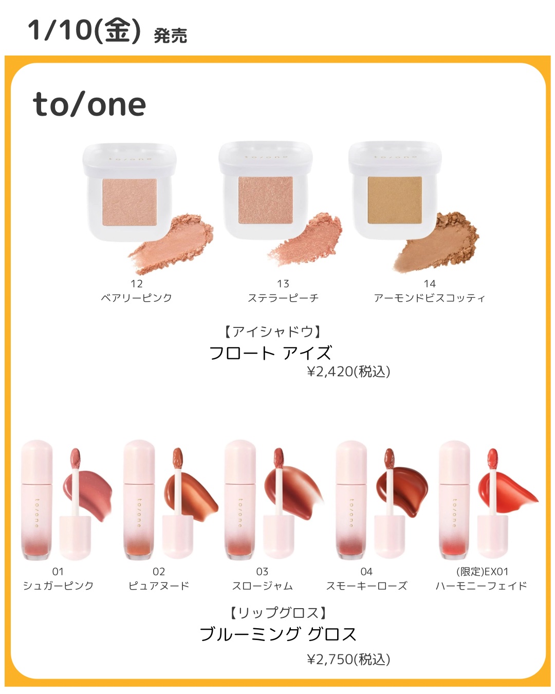 コスメ発売日1月2週目🛒𓂃𓈒𓏸┈┈┈┈┈┈┈┈┈┈┈┈┈┈┈┈┈┈┈┈こんにちは!低価格で可愛いをゲットしたいひよ🐣です。今回は1月6日(月)-1月12日(日)に発売されるコスメを紹介します月間のコスメ発売についてはこちらから↓https://lipscosme.com/posts/7086180?_t=zLqY&_r=RxlQWY1月1週目(1/1~1/5)のコスメ発売日はこちらから↓https://lipscosme.com/posts/7087137?_t=zLqY&_r=RxlQWY┈┈┈┈┈┈┈┈┈┈┈┈┈┈┈┈┈┈┈┈💄紹介コスメETVOS・ミネラルアイバーム定番4色限定4色¥2,750DUO・ザクレンジングバーム全5種類18g¥836/66g¥2,970ReFa・リファハートコームアイラ追加3色¥2,970ETUDE・プレイカラーアイズミニジェムストーン限定3色¥1,980・ルックアットマイアイズジェムストーン限定6色¥715・オーバーグロウティント限定6色¥1,540to/one・フロートアイズ追加3色¥2,420・ブルーミンググロス全4色限定1色¥2,750ランドリン・ファブリックミスト370ml¥547・柔軟剤本体600ml¥767/詰替480ml¥547・部屋用フレグランス220ml¥657・ペーパーフレグランス¥360・ルームディフューザー本体80ml¥987/詰替80ml¥690・クルマ用フレグランス¥547MaybellineNew-York・スカイハイ追加1色¥1,540Peripera・インクムードグロイティント¥1,210・インクグラスティングリップグロス¥1,320・インクポケットシャドウパレット¥1,650・ピュアブラッシュドサンシャインチーク¥880※公式サイト表示価格※使用写真は公式サイトよりお借りしました。┈┈┈┈┈┈┈┈┈┈┈┈┈┈┈┈┈┈┈┈.最後までお読みいただきありがとうございました🤍̖́-この投稿が参考になったらいいねそしてブックマークでいつでも見返してくださいね.•♬コメントやフォローもお待ちしてます(*॑˘॑*)┈┈┈┈┈┈┈┈┈┈┈┈┈┈┈┈┈┈┈┈#新作コスメ#プチプラ#プチプラコスメ#韓国コスメ#ETVOS#エトヴォス#リファハートブラシ#ETUDE#エチュード#トーンペタル#ランドリン#メイベリン#peripera#ペリペラ