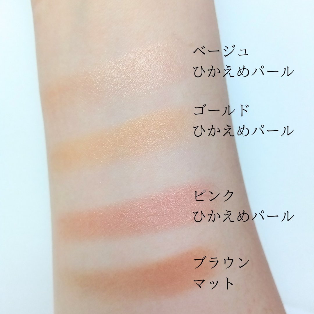 シマーだったりパール感のあるカラーがふわ〜っと艷めく上品な光沢感でめちゃくちゃ大好きなの❣️ 左上のシャンパンベージュのカラーが肌色に絶妙に溶け込んでだけど奥行が出せる光沢感でこの単色だけでも欲しいくらい✨️ ファジーネーブルは良い意味で万人受けするヌーディさが今っぽいアイシャドウだと思った(* ॑° ॑* )♡♡