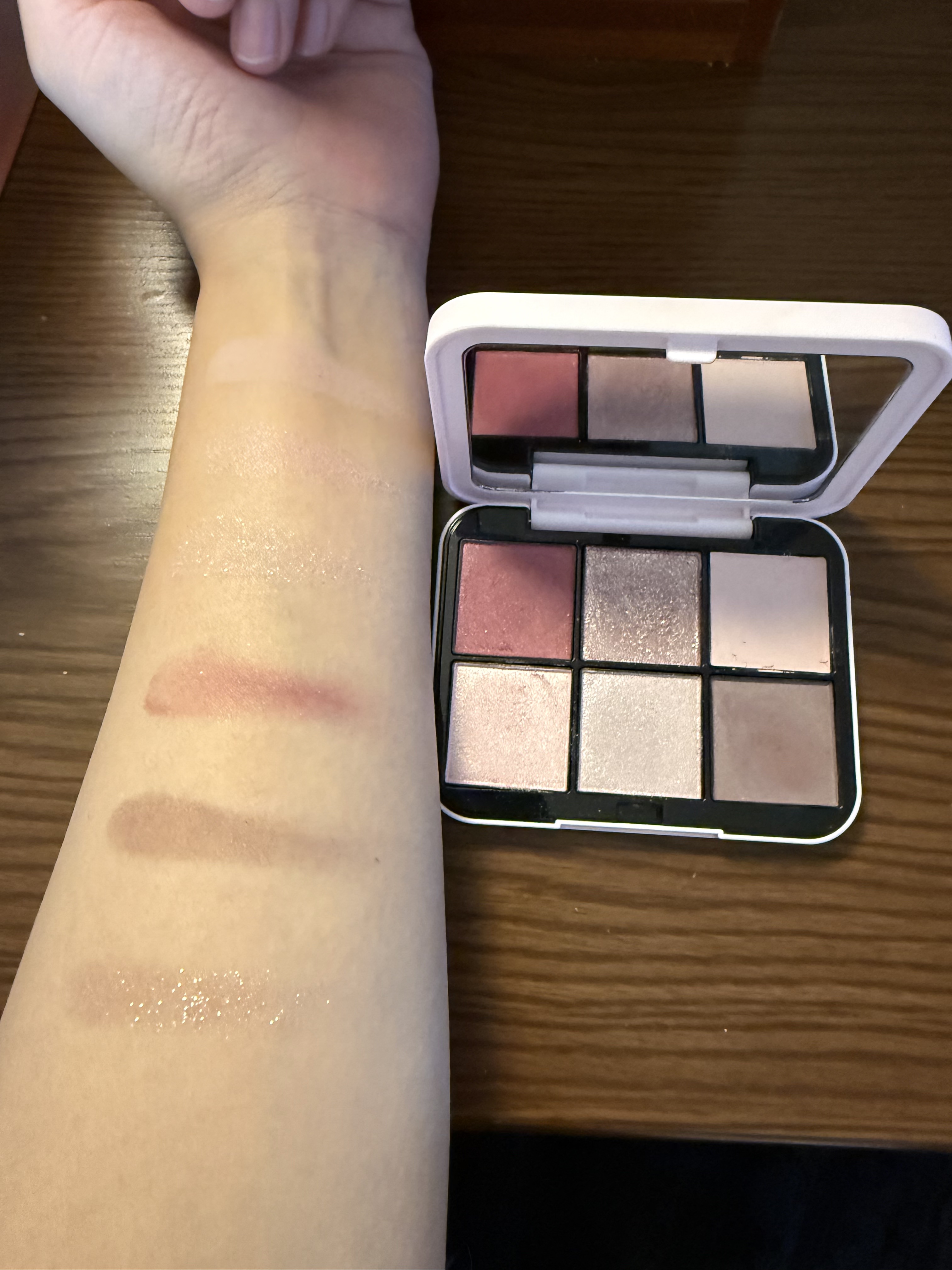 このパレット、ラメ、マット、ツヤの質感が絶妙で、1つでふんわり甘めも、大人っぽい辛口も叶うの! 甘辛青みのローズピンクに加えて粒の異なるラメや、ふんわりピンクのマット、締め色は青みのあるココアブラウン! 粉質が格段に良くなった気がするの!わたしはこれがかなり嬉しい🥺
