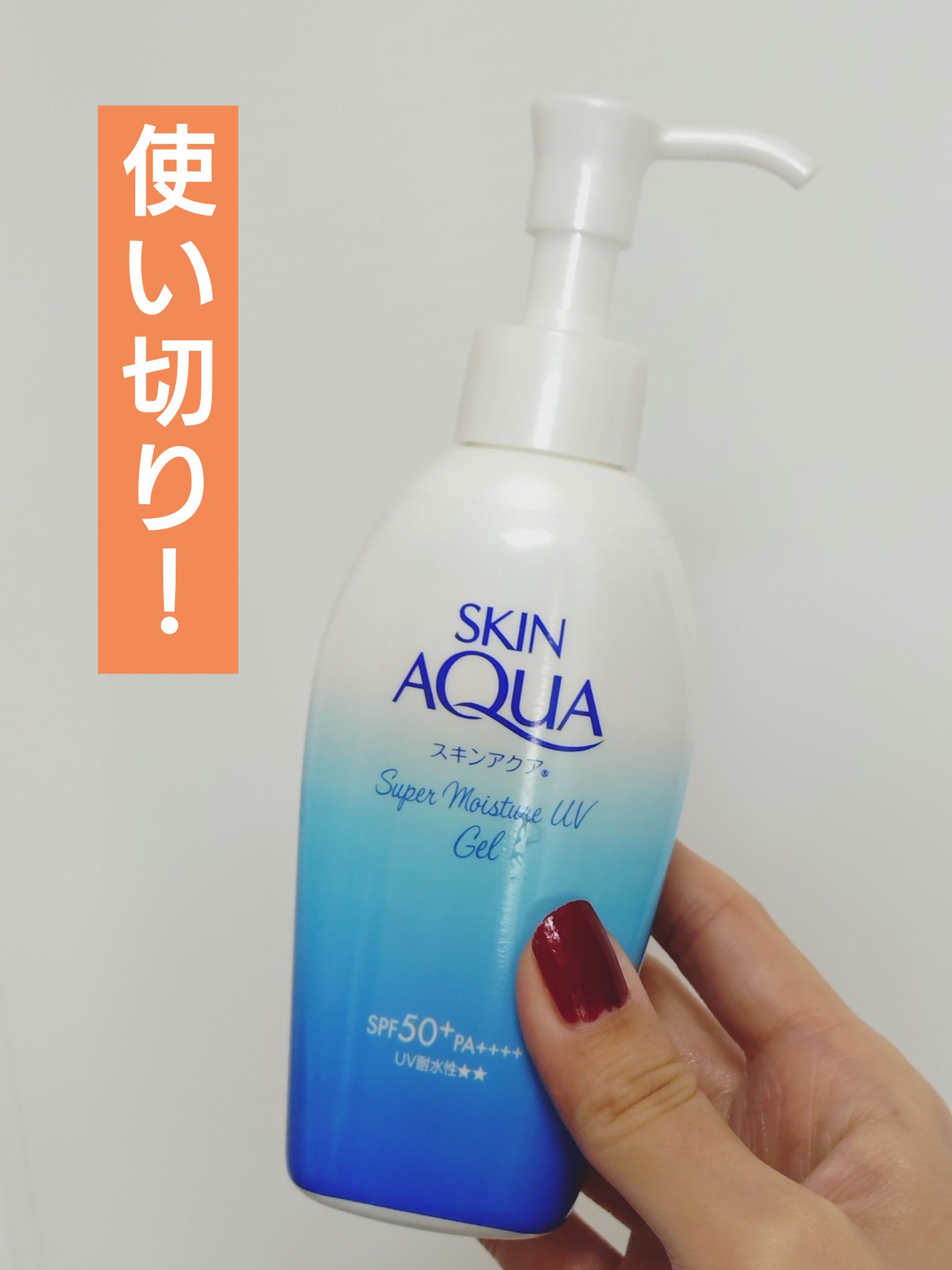 【使った商品】スキンアクア スーパーモイスチャージェル 140g ポンプ【商品の特徴】水膜ベールUV。全身にのばしやすいジェルタイプSPF50+PA++++UV耐水性★★顔・からだ用 うれしい110g新開発!光耐久カプセルNEO★スーパーウォ...