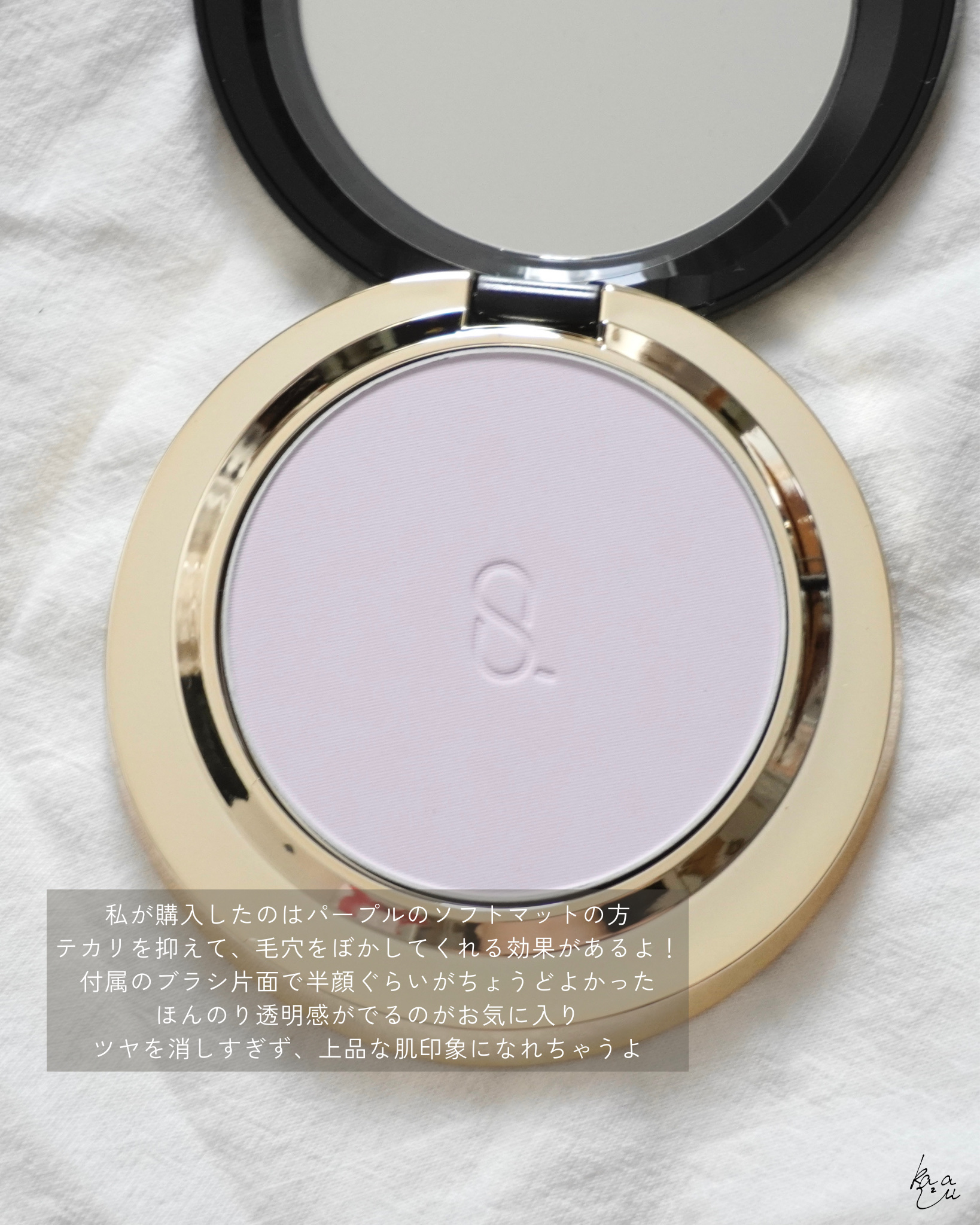 SUQQUのパウダーがとても良かった...✨ーーーーーーーーーー▶SUQQUソフトマットセッティングパウダー8,800円(税込)※セット価格ーーーーーーーーーー実は買ったのは3月なのですが、、リリースが出たときから買おうか迷っていたアイテムで、自分の誕生日に合わせて購入しました🫶本体とリフィルが別売りで、リフィル交換できるタイプSUQQUはリップもそうですが、この形式が増えてるなという印象店頭で買う際は問題ないかと思いますが、ネット購入する際は気をつけてください!本体にブラシと袋がついてくるよ!店頭で買ったので、セットはBAさんにしていただきました🙏付属ブラシがさらフワで、ついてくるって知った時本当にびっくりした!ここだけでも買ってよかったと思えるぐらい個人的には嬉しいポイントです🫶マットとグロウの2タイプが発売になり、私はBAさんとも相談してマットを購入私が聞いた時はマットの方が人気ですとのことでした!これからの季節気になりやすいテカリを穏やかに抑えて、毛穴をぼかしてくれるソフトフォーカス効果のあるパウダーが配合されているよ!カラーは淡めのパープルで色味はほぼないですが、ほんのり透明感が出ている気がする!青みによりすぎてないので私も使いやすかったです◎付属のブラシでサッと撫でるだけでパウダーの量は十分!片面で半顔ぐらいのイメージでつかっていますがっつりマットになるわけではなく、ナチュラルな仕上がりですサイズとしては少し大きいけど、意外と薄いので持ち運びもできそう!袋がついてるから傷もつけなくてすみそうで嬉しい!みんなもチェックしてみてね💫#SUQQU