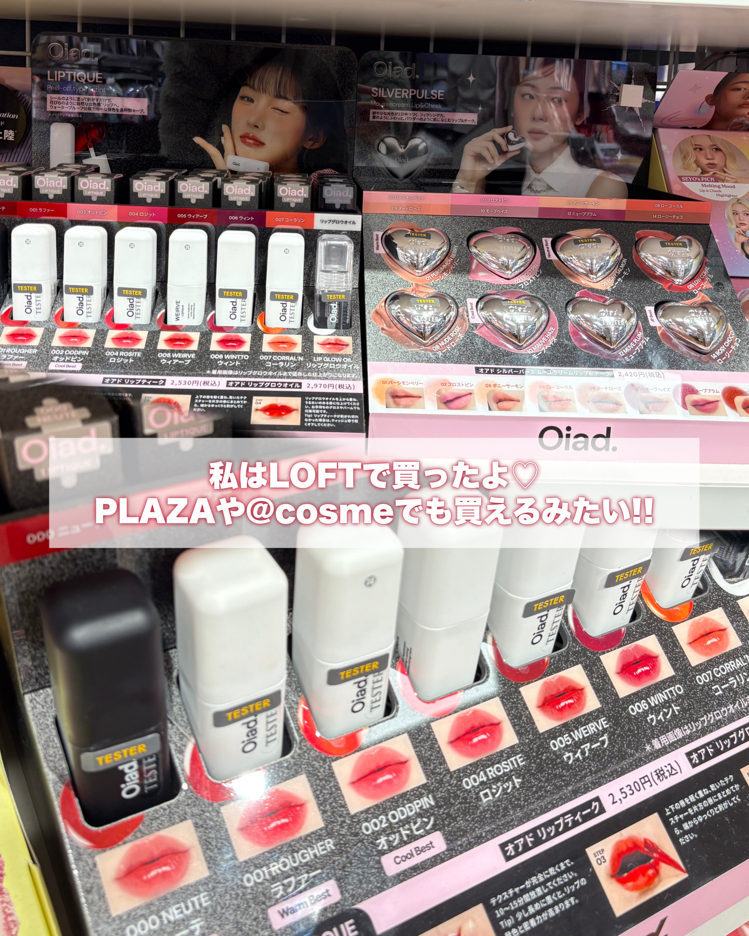 Oiad.の製品がオフラインでも買えるようになったよー!🥺全国のロフト、プラザ、アットコスメでOiad.が買える!私のお気に入りのリップティークも見つけたよ🥺🩷大人気で売り切れのカラーも🥹仕事中リップ塗り直す時間がなかなか取れないからオアドの...