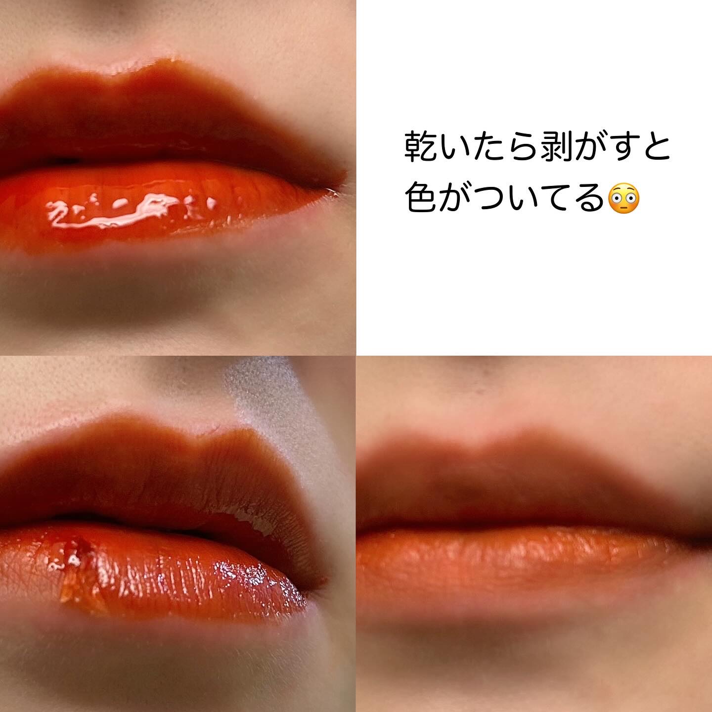 持続力がすごく良くて1日持つ、ご飯食べた後も塗り直さなくても大丈夫なリップ💄 見たままのクリアな発色で塗ったあとはツヤというか唇がテカテカって表現が近いかも。 メイク直しがしにくい時とかにこれを使うと便利かも。仕事の時とかかなり重宝してます😊