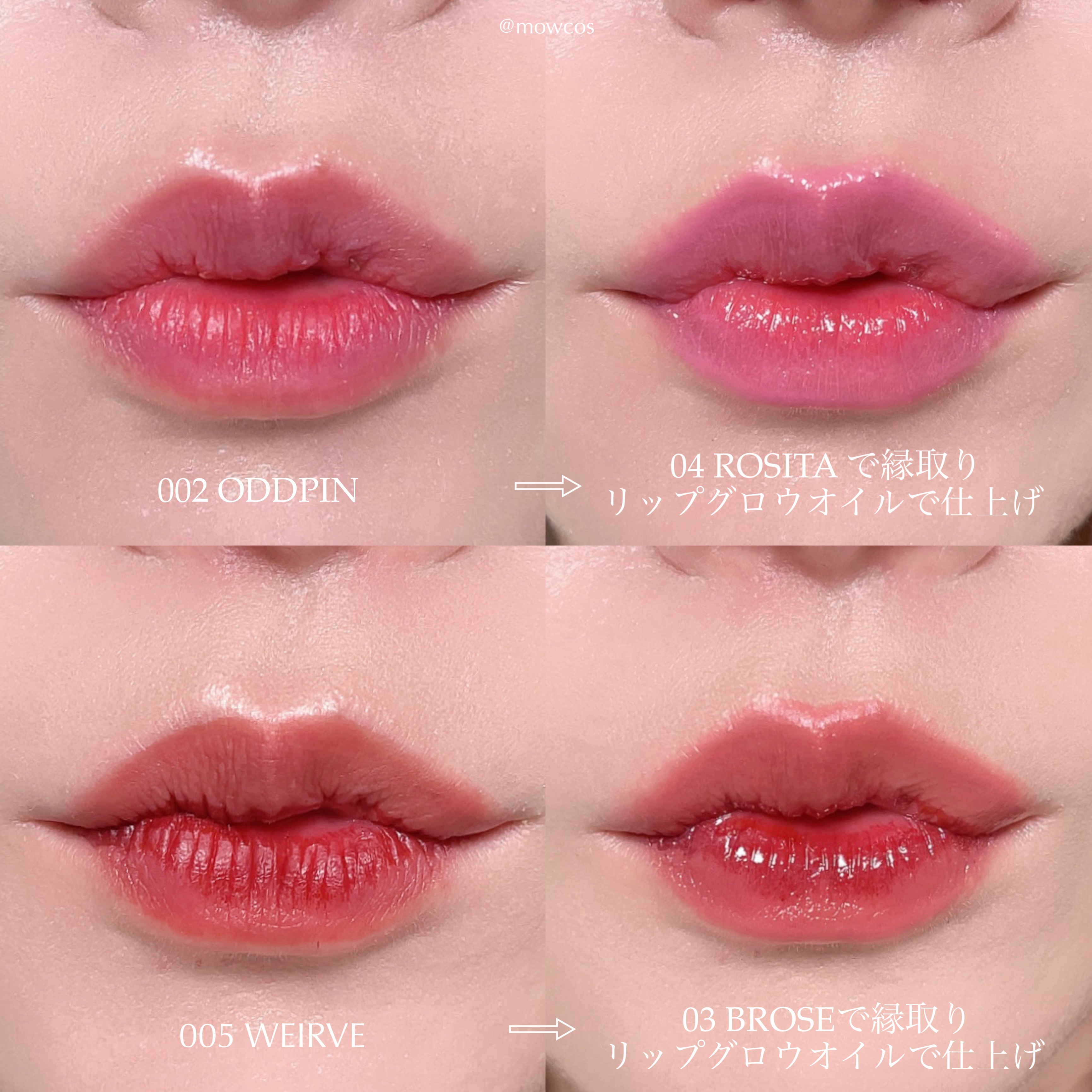 塗って剥がしてそのままずっと可愛い♡Liptique◆001ROUGHER◆005WEIRVE◆006WINTTOBlurFiangLipPencil◆04ROSITAお試ししました!!◆Liptique塗った瞬間の発色にびっくりして、仕上がりが不安になるけど大丈夫!!笑しばらくして乾いてるのを確認して剥がせば、アラ、カワイイ♡そのままでも可愛いけど手持ちのグロスとかと合わせてもいい感じ♪色んな組み合わせが出来てそれも楽しめる!色持ちも抜群♡プランプ効果もあるからぷっくり可愛い!でも可愛く仕上げるには下準備が必要⚠️→唇が極度に乾燥していないか、角質がないか…はチェック✅してから塗り始めてね!◆BlurFiangLipPencilベースリップにもオーバーリップにも、もってこいなリップペンシル。04ROSITAは、青み強めのピンクでとてもタイプのカラーでした!やったことないけど、オーバーリップ挑戦してみよ♪一度塗ったらハマるかも!?是非使ってみてほしいリップの紹介でした♡#PR#oiad#Liptique#リップティーク#韓国コスメ#韓国リップ#oiadlipglowoil