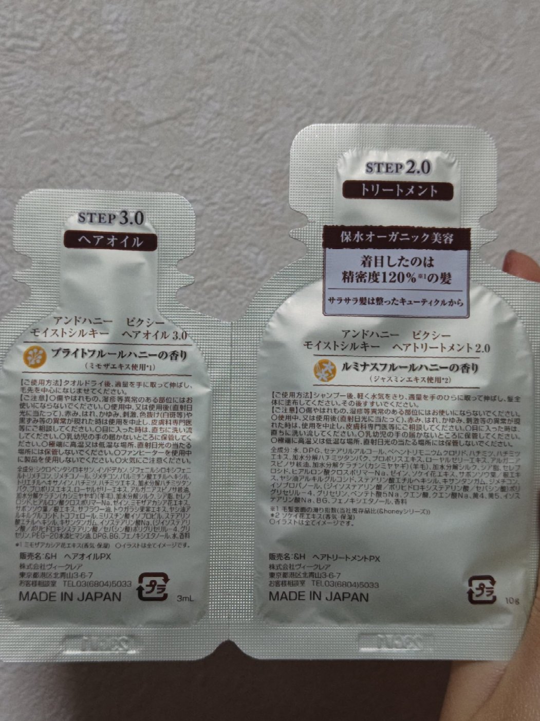 &honeyアンドハニーカラーコントロールリペアシャンプー1.0/ヘアトリートメント2.0 シャンプー10ml+トリートメント10gサンプル使用のみのため、私のメモになります。画像に書いてあるので気になる方は確認してみてください。#ヘアケア