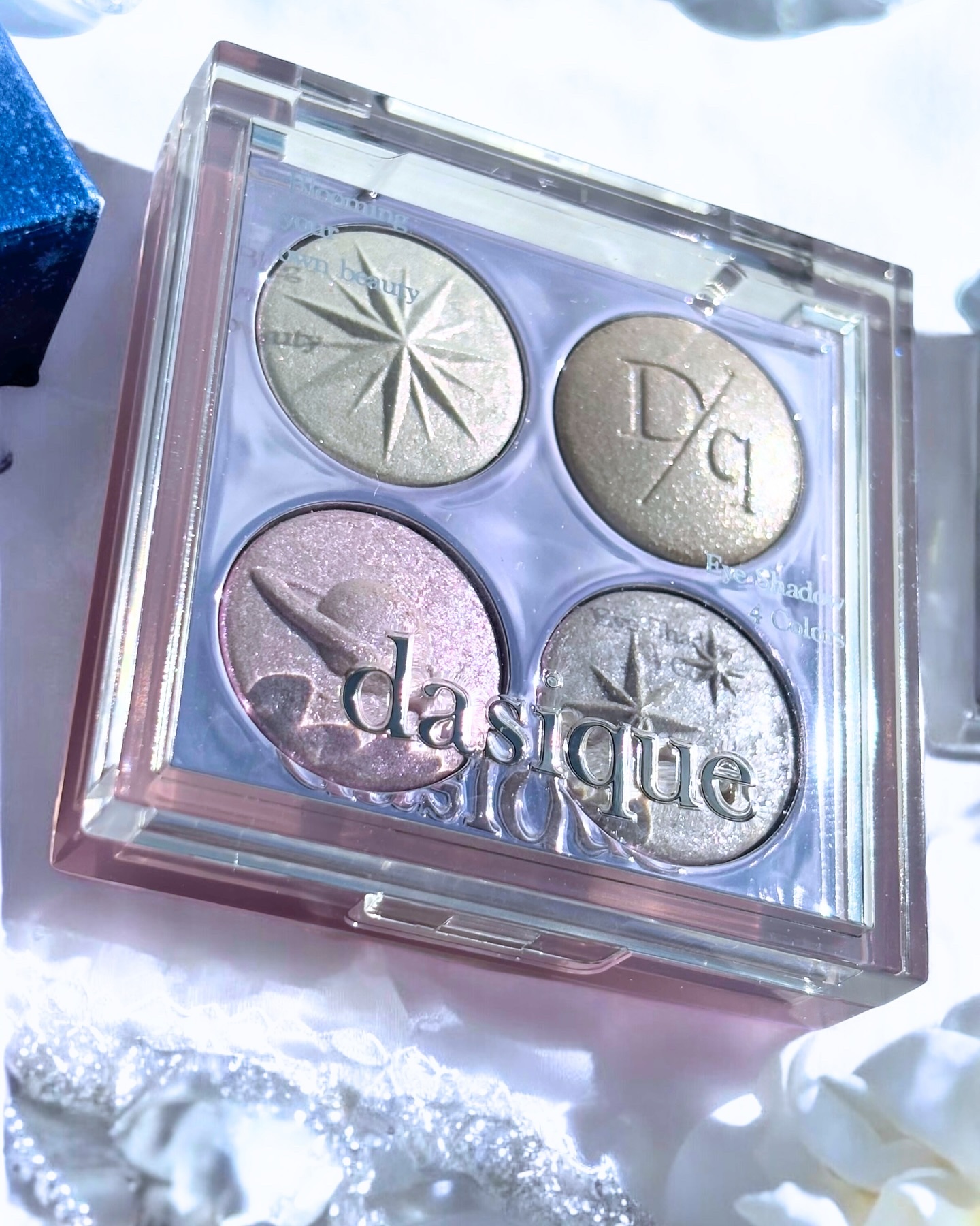 星屑をあつめて詰めたアイシャドウパレットが可愛すぎる…!!!! アイシャドウパレットだけどハイライトとしても使える4色♡ 透明感と血色感、儚さ、冬に欲しい雰囲気が全部手に入る魔法のパレットです🪽