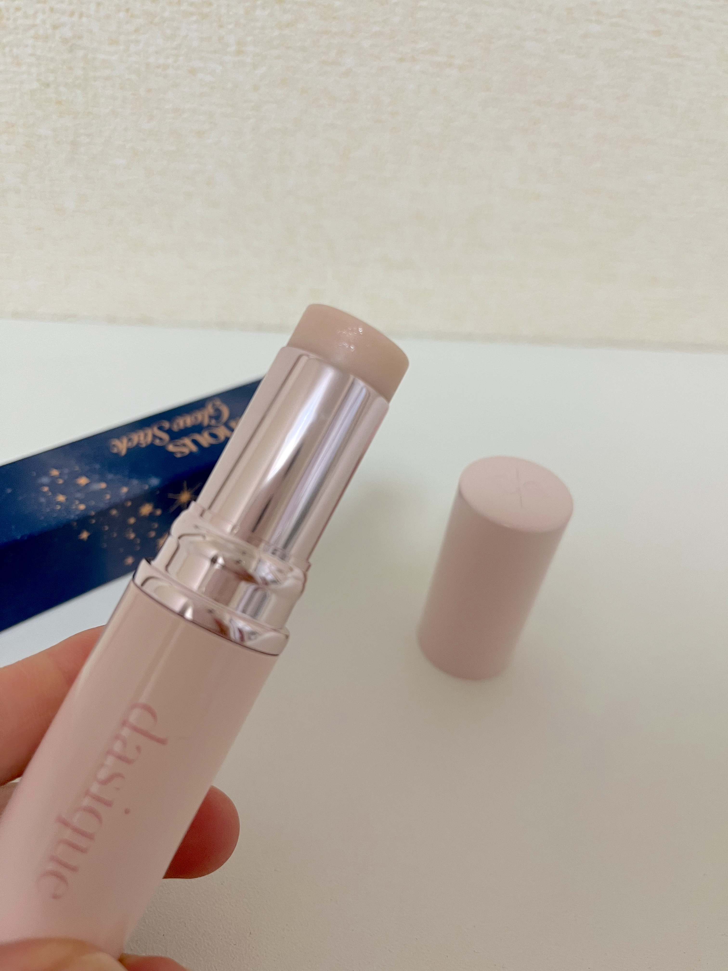#dasique#グロウスティック#01デューイムーン ┈┈┈┈┈┈┈❁❁❁┈┈┈┈┈┈┈┈◯濡ツヤ感◯コンパクト◯パケが可愛い△直接塗ると下地が剥がれてしまうから指で取って塗るのがおすすめ#韓国コスメ#ホリデーコレクション#Qoo10#ホリデー#ツヤ肌#コスメレビュー#コスメ#コスメレポ#ハイライトスティック#デイジーク