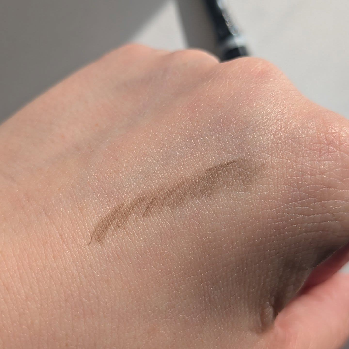 ほどよい柔らかさの楕円芯で太くも細くも描けます👍アルコールフリー、鉱物油フリー、動物由来成分フリー、香料フリー👐繰り出しタイプ✨今まで鉛筆タイプだったので削ることがなくてストレスフリー🌿するするっと描けて、濃くもなく薄くもなくいい塩梅の色でした☺️落ちにくく、よれにくい😚ブラシもついているので描いたラインをぼかすことができてとてもいいです🤗