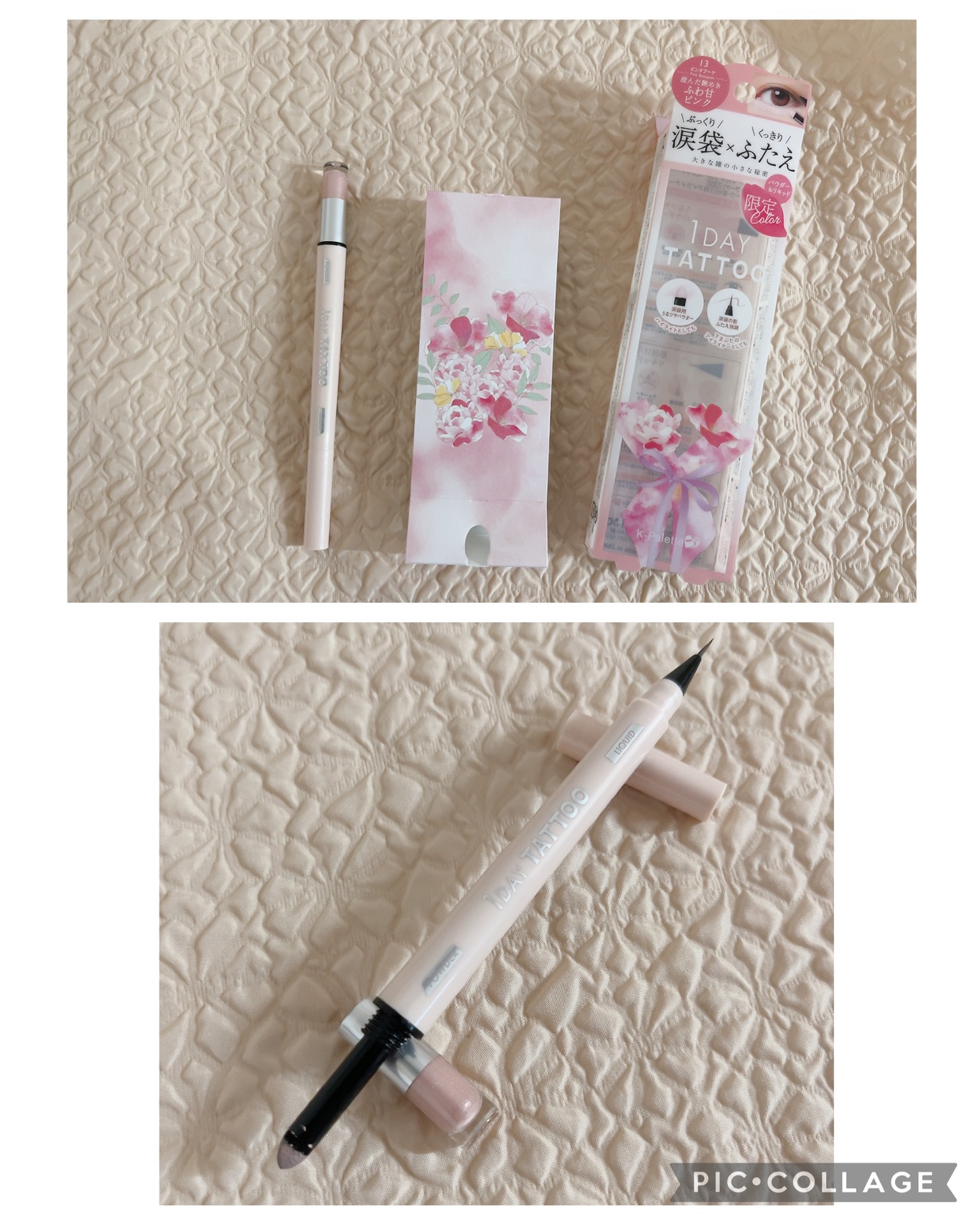 Xを通してK-Palette|K-パレット様のCPに当選し、パレットマルチブルーミングアイズ限定13ピンクブーケ&14ベージュブーケを頂きました💐✨️一体化になったパウダー&リキッドでマルチに使用でき、目元を華やかに演出します🌸⬇️ブーケそのもののパッケージ素敵💞7種の美容保湿成分の高輝度パウダーでぷっくり涙袋に。極細ショート筆で程よい血色感と自然な発色を演出。ピンクブーケ、ベージュブーケはどちらとも控えめな薄づきの色で優しい艶感のある涙袋になりました❣️リキッドは綺麗にスっと引け陰影のある目元を作れました🥰優しい色使いで良き🫶この度はありがとうございました🍀#マルチブルーミングアイズ#ピンクブーケ#ベージュブーケ#Kパレット