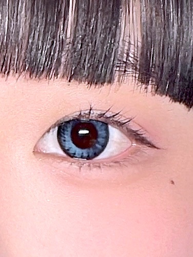 直径は大きすぎず小さすぎないのでブルーでもきつい印象にならずに可愛らしい雰囲気にしてくれます😍 着色の仕方がグラデーションっぽくなっていてぱきっと発色だけど瞳に馴染みやすいカラー✨ 暗いところでもしっかりブルーに見えるのでコスプレや仮装にも使いやすいと思います😊