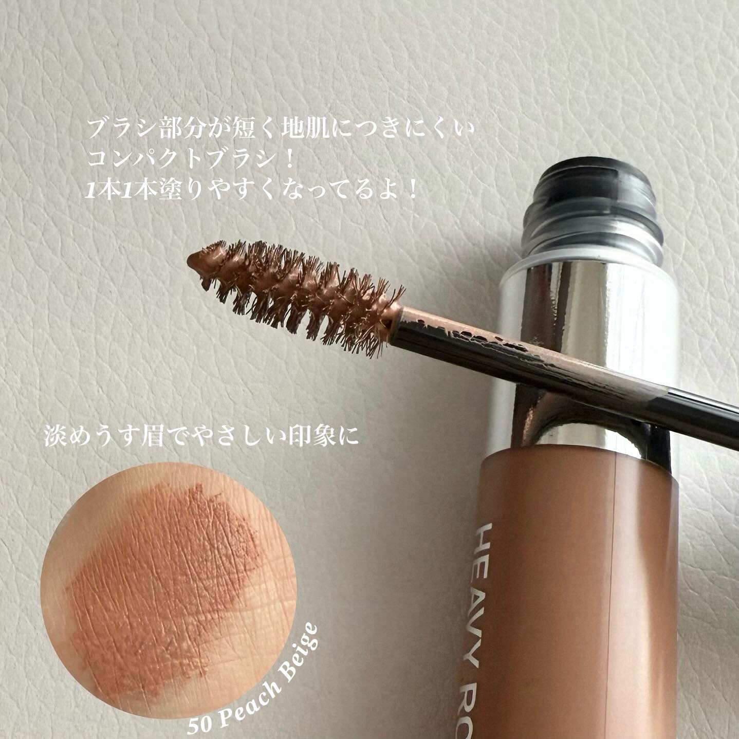 ヘビーローテーションヘビーローテーションカラーリングアイブロウEX限定色50ピーチベージュ汗、水、皮脂、こすれに強いマルチプルーフ処方!大好きな眉マスカラで愛用しています😍限定色の50ピーチベージュはうす眉でやさしい印象に✨ふんわり仕上がって地肌にも付きにくいので初心者さんにもおすすめ!カラーもたくさん種類があるので気分や髪のカラーによって合わせられるのも嬉しい☺️🤍#ヘビーローテーション#heavyrotation#ヘビロテ#眉マスカラ