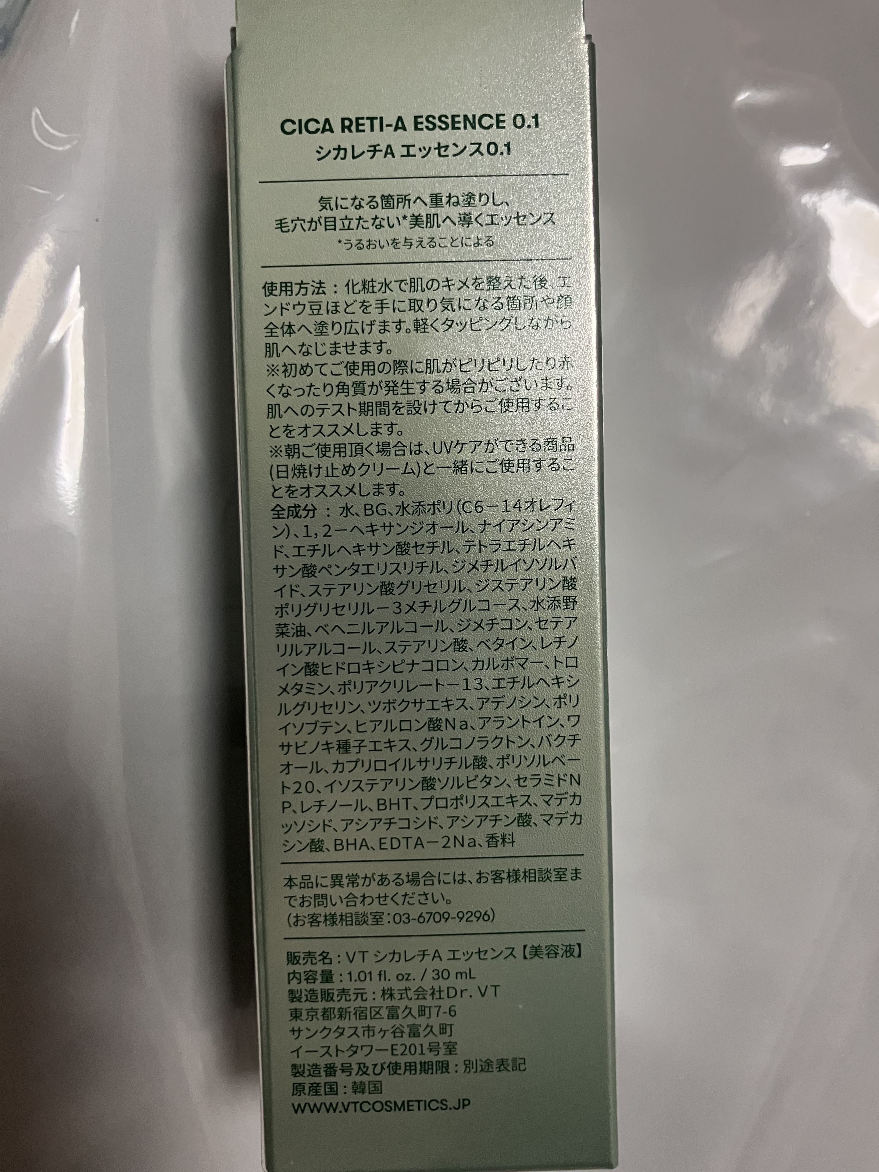 [レチノール初心者でも使えた!毛穴ケア美容液] VTシカレチAエッセンス0.1 30ml3300円(税込)毛穴ケアに特化した美容液をずっと探していて購入しました。CICAとレチノールの成分で、肌を守りながら攻めのケアがで...