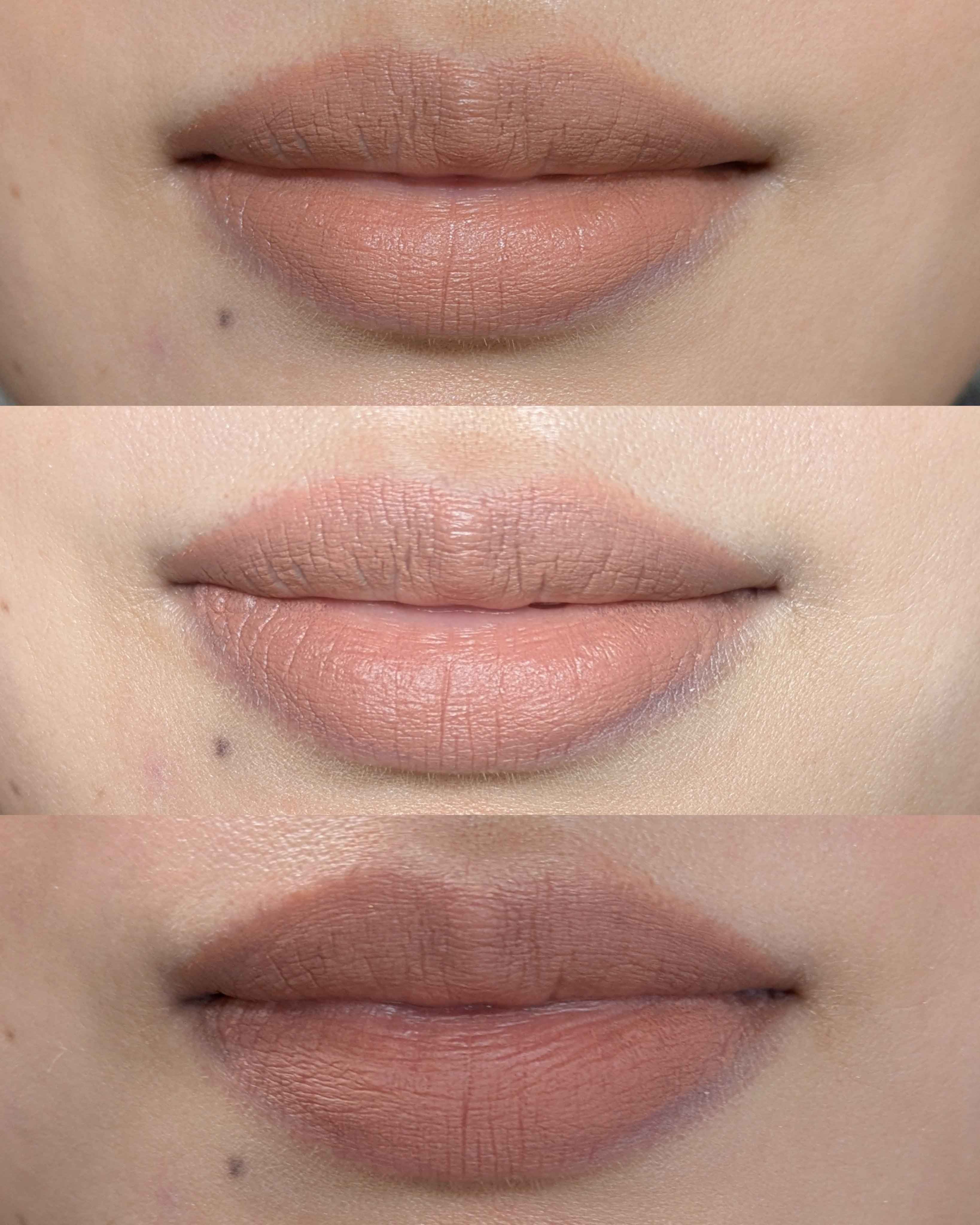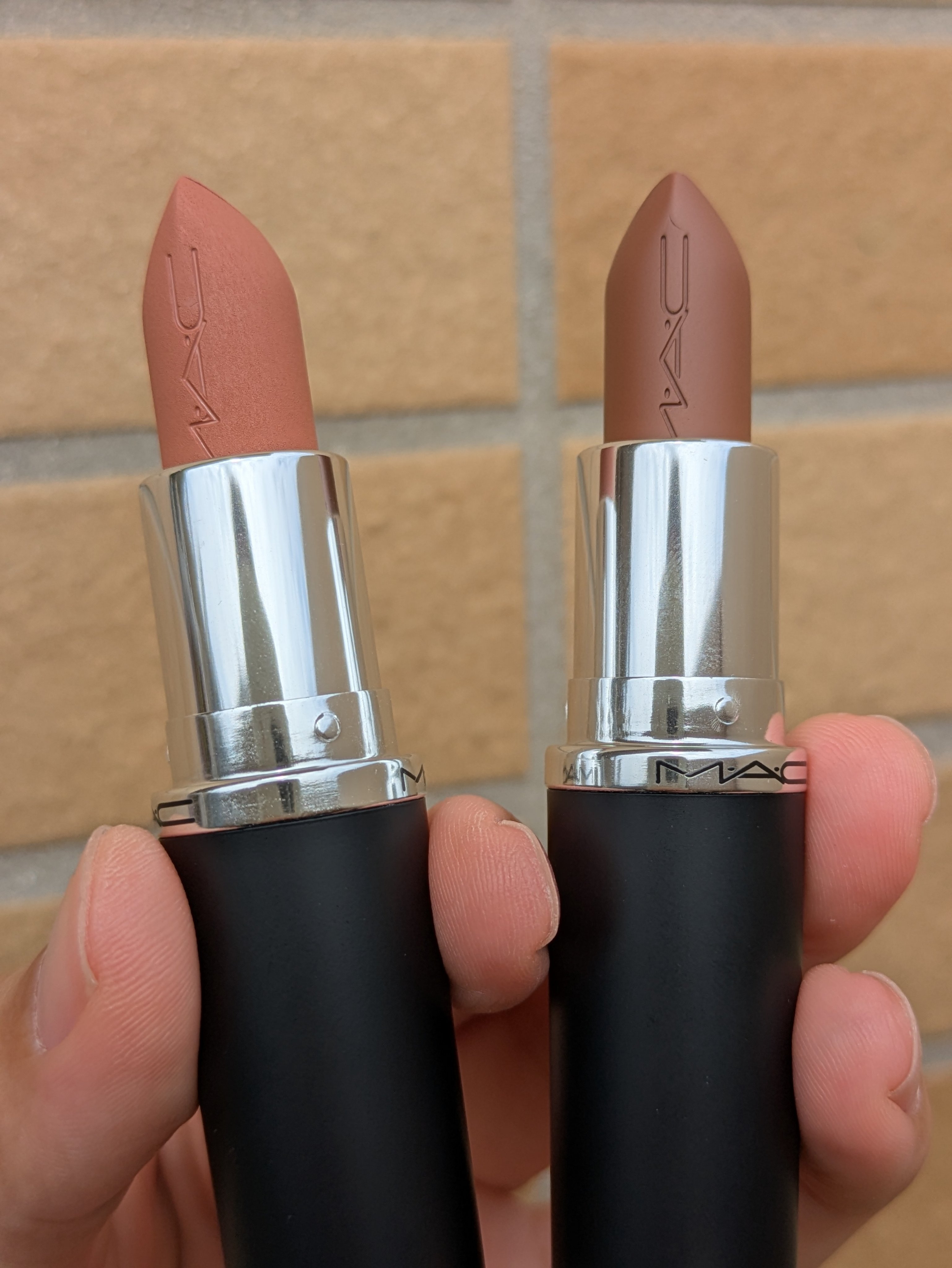 秋の雰囲気で使いたくなった1本❣️M・A・Cマキシマルシルキーマットリップスティック―ヤシュ(ピーチヌード)流石のM・A・C!お洒落な色曇り空で写真だと白みが強めに出たけど実物は単色使いしても肌から浮かないヌーディカラー🥰ヤシュをベースに色を重ねても可愛いく仕上がりそう!マットだからシワはわかる🤣リップスティックとしては色持ち良い💓マットだと乾燥しがちだけどこのシリーズはマットタイプのリップクリームのような質感手持ちと比較&併用マキシマルスリークサテンリップスティック―ホッジポッジ(モカミッドトーンブラウン)サテンとマットツヤ感の違いがはっきりわかる!ホッジポッジ単体だと漂う血色不良感(これはこれでお洒落)だけど重ねるとマイルドに🤭