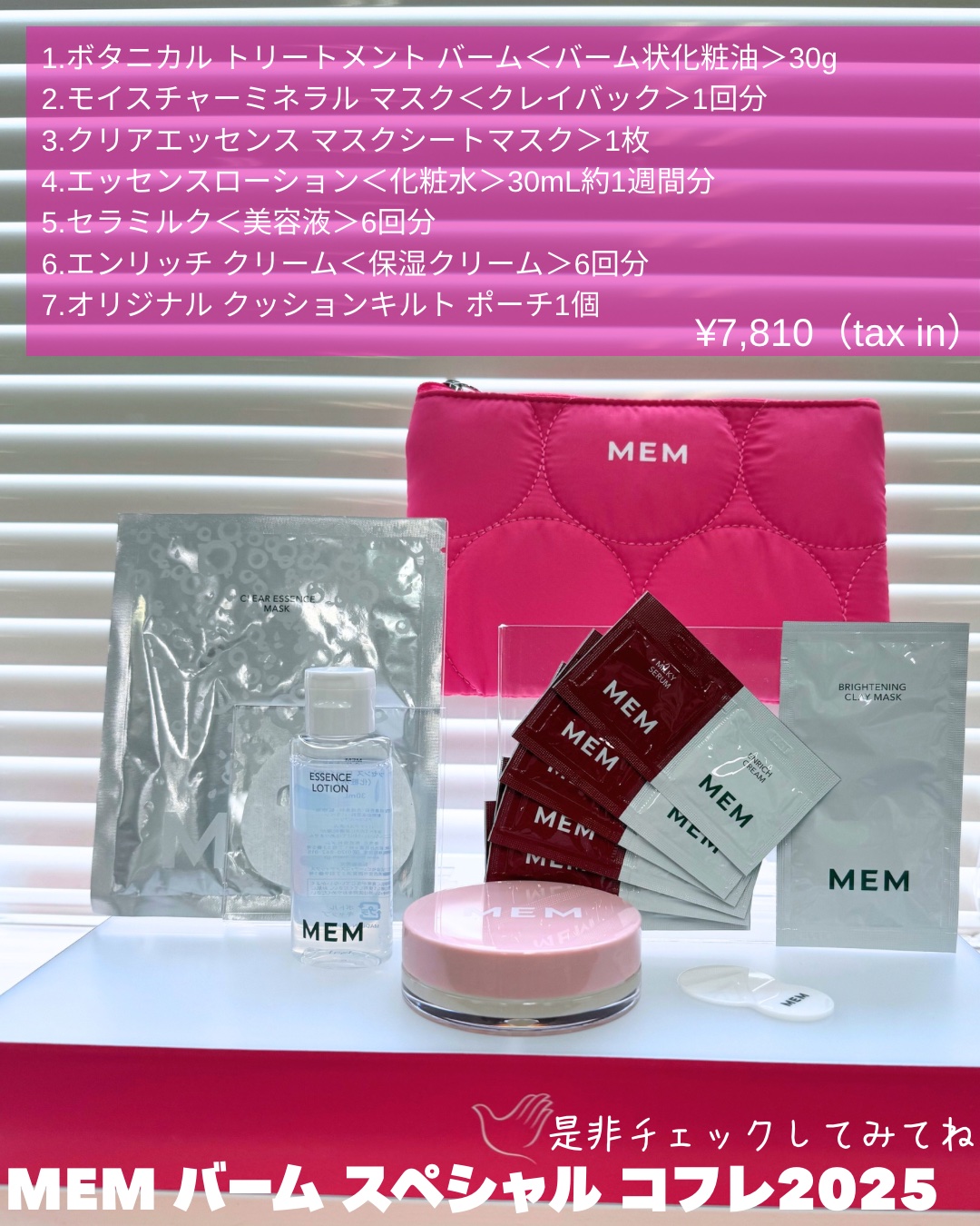 お風呂の湯気を利用してスチームパックしてみた🛁MEM/メムご存知の方いらっしゃいますか?まだ2023年に誕生したばかりの新しいブランド。私はパッケージがかわいいなと思って気になってました♡貴陽石を細かく砕いてKIYOHクレイという化粧品原料にし、すべての製品に配合しているのが最大の特徴🪨新製品発表会に参加してまいりましたので紹介させてください✨わたしが一番気に入っているのが…クレイパックandバームinお風呂🛀✨この2つを使ってお風呂でゆっくりセルフエステタイムを過ごすのがわたしのお気に入り😚🫧【モイスチャーミネラルマスク】 すごくなめらかなマスク。なんと、異なる6種のクレイを配合しているのですが、そのうちのひとつがこのブランドMEMのギー成分🔑貴陽石🪨✨ 群馬県の鉱山で約6,500万年前の地層から採掘された貴重な鉱石。これを細かく細かく数ヶ月かけてい砕き、化粧品原料にしたのがKIYOHクレイ。MEMでは全製品にこのクレイを配合しています。肌あれケアはもちろん、くすみ*1、エイジングケア*2、毛穴ケアにも!【ボタニカルトリートメントバーム】 先ほどのクレイクレンジングを拭き取ったら(洗い流したら)このバームを顔に塗って入浴。するととってももっちもちに。オイルがとても柔らかく伸びが良い半生仕立て、手のひらにのばすと、ふわーーっと広がるハーブの香りがたまらんです。植物由来オイルだから肌との親和性がよくてあと肌がベタつかないところも大好き!厳選された保湿オイルが個人的にお気に入りばかりで好印象🩷特にウチワサボテンオイル🌵✨【エッセンスローション】 バームの後は化粧水✨開発者の瀬戸口さんはコットンパックがおすすめとおっしゃってました。説明を聞いている間も手にコットンパックをしていたのですが、へんなとろみがないのであと肌がとってもいい仕上がりベタつきがないのにしっかり保湿されている感覚がしました!なんとこのなめらかな化粧水にも貴陽石は入ってるんです。すごい🪨【クリアエッセンスマスク】 化粧水の代わりのスペシャルケアはシートマスク。フィット感のあるシートですが、さらに顎周りや頬を自分の顔に合わせて調節することが出来て自分の顔の一部みたいで、つけてるのを忘れそうになりました笑 シートはひたひたなのにしっかり液をほーるどしていて垂れてこないところが主婦には大助かり💪✨画像ではクリスマスコフレも紹介してます🎄是非みてね!*1乾燥による*2年齢に応じたケアのこと#PR#MEM#メム#貴陽石#クレイマスク#ボタニカルバーム✎*┈┈┈┈┈┈┈┈┈┈┈ELAN’sJ-BeautyNotes|日本の美を世界へ発信中❁VoCEアンバサダー❁イセタニスタ/新宿伊勢丹公式サポーター*Certifiedincosmetics Skincare&makeupaddict*SharingJapanesebeauty&products ┈┈┈┈┈┈┈┈┈┈┈いいね・フォロー・コメント嬉しいです♡@elan_lotus⇦その他の投稿はこちらLikes,follows,andcommentsmakemesohappy!♡@elan_lotus←Checkoutmyotherpostshere. ┈┈┈┈┈┈┈┈┈┈┈#コスメオタク#コスメコンシェルジュ#日本化粧品検定1級#化粧品成分上級スペシャリスト#化粧品成分検定1級#化粧品成分#Jbeauty#Japanesecosmetics#japaneseskincare#japanesebeauty#cosmeticlover#뷰스타그램#피부관리 #화장품 #코스메틱 #스킨케어 #메이크업 #엠오티디 #코덕 ✎*┈┈┈┈┈┈┈┈┈┈┈