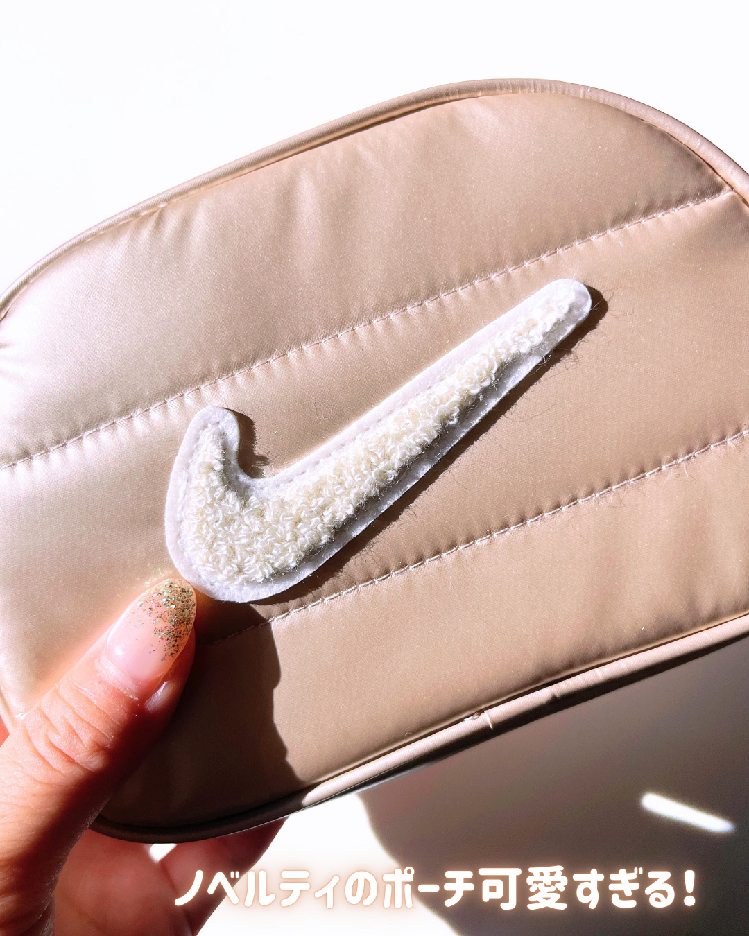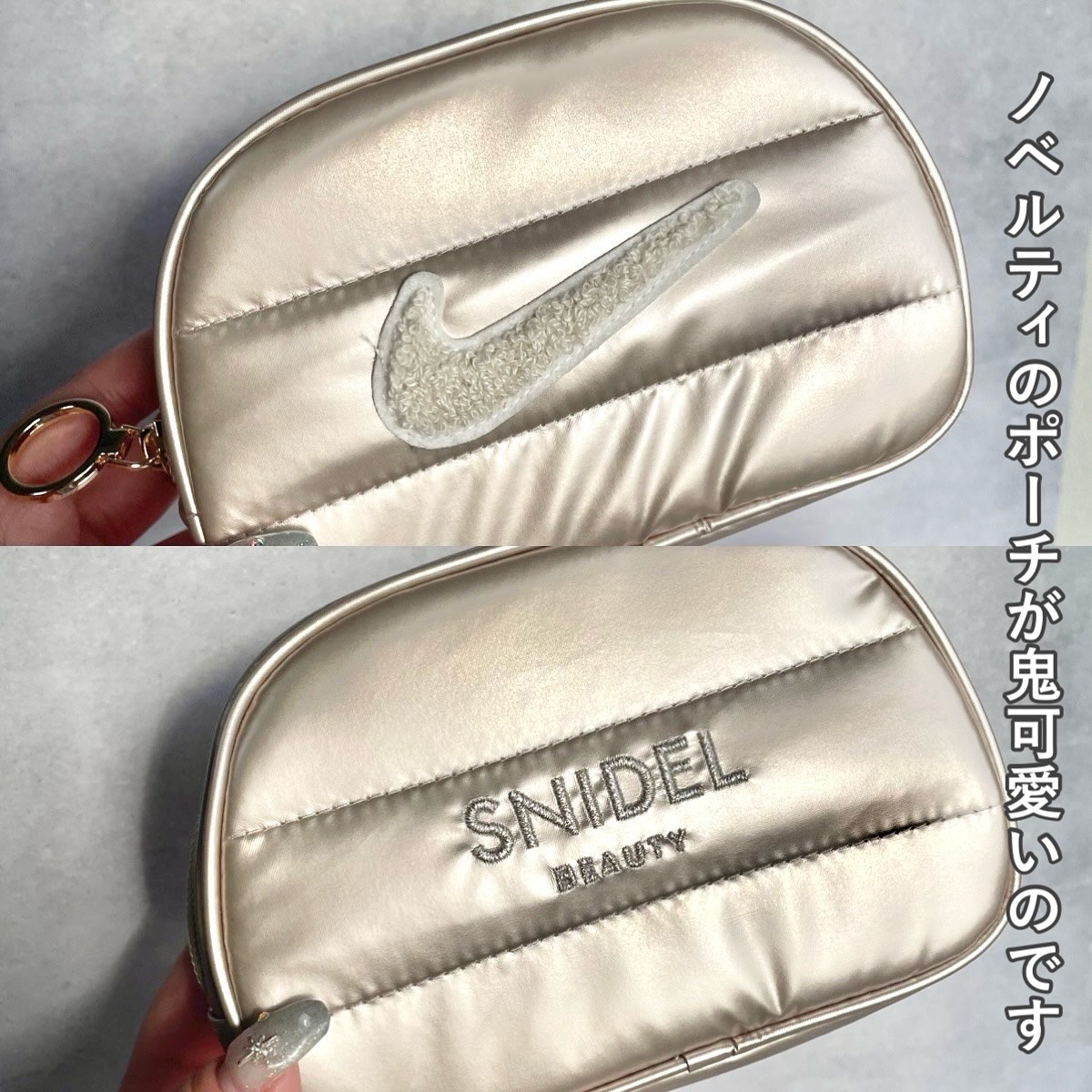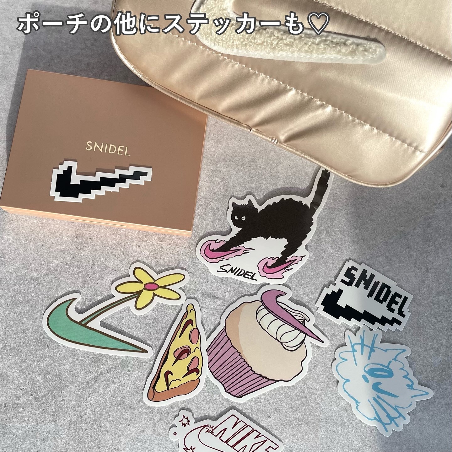 目元にも頬にも使えるマルチパレット。柔らかいベージュピンクのカラーが特徴で、ナチュラルな輝きをプラスしつつ、肌に溶け込むような仕上がりに! SNIDEL×NIKEの限定ポーチがセットになっていて、シンプルなのに存在感のあるデザインが超可愛い♡ これだけ魅力的な内容で、この価格は絶対にお得🥹 数量限定だから、早めにチェックしてね!