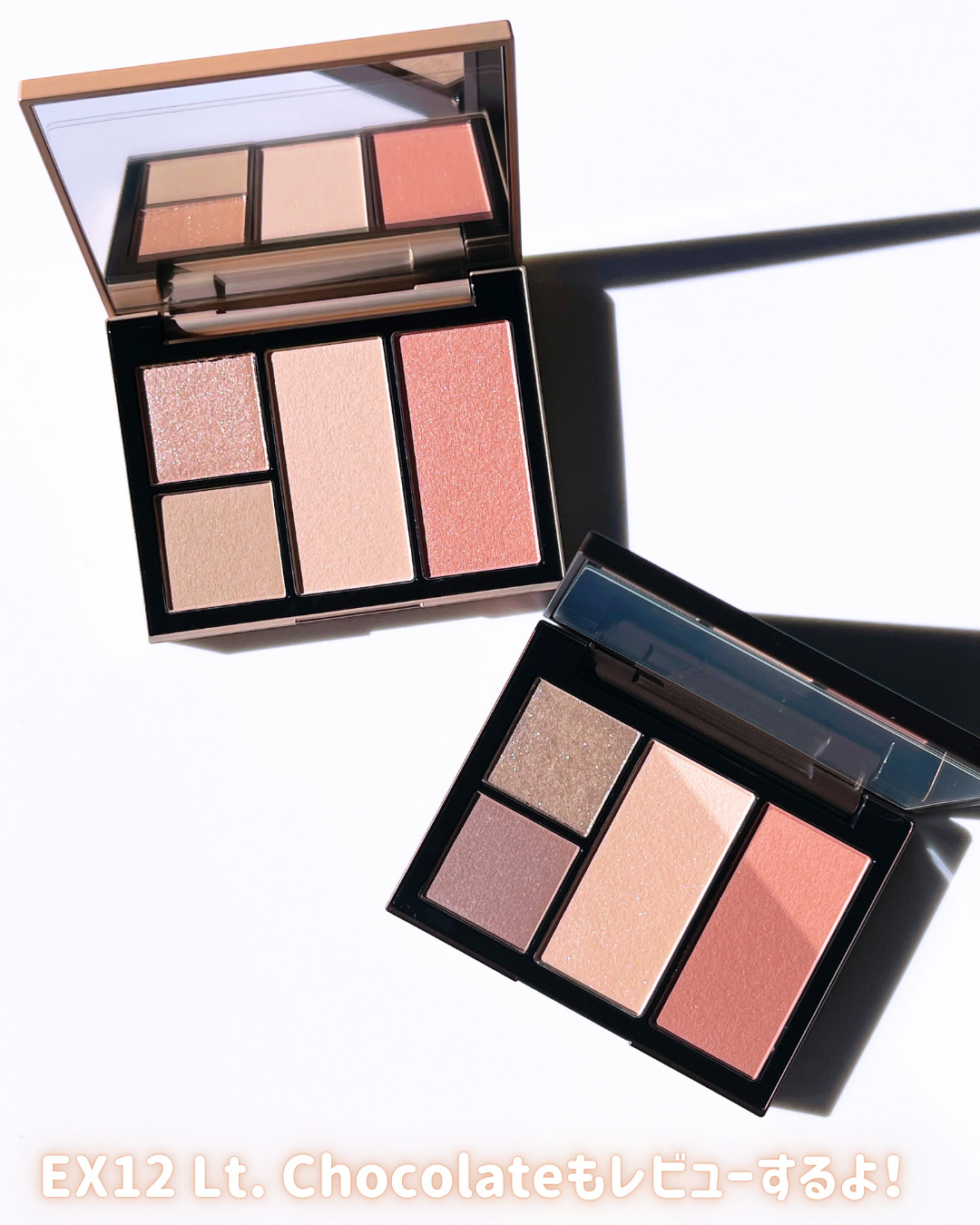 コラボレーションアイテムにインスパイアされて生まれた2種類の限定フェイススタイリスト 🤎 どちらも使いやすいブラウンベージュでチーク・ハイライトにも使える万能パレット✨ EX12の方がラメ感がゴージャスで華やか🫶🏻