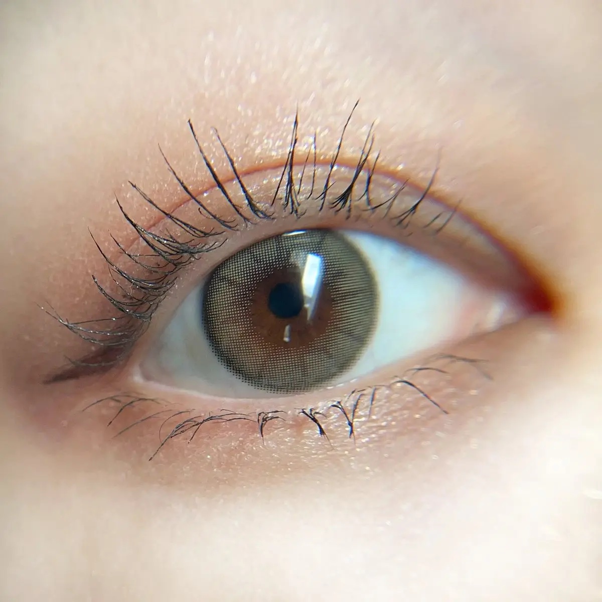 程よい大きさ、彩度低め くすみっぽいブラウン ハイライトの色も明るすぎないからなじみやすい! 透明感が凄くあって瞳がキラってして可愛い! 立体感もある大人かわいいカラコン。 プリズムバラストデザインになっていてまばたきした時に正しい向きに調節される使用だよ!
