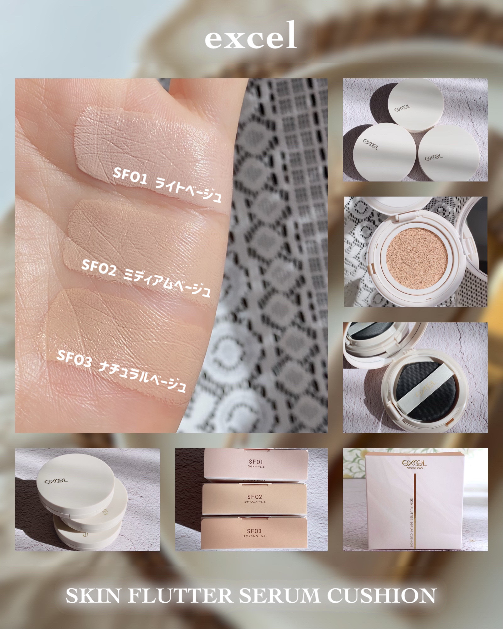 ❁⃘*.゚excel❁⃘*.゚~新作クッションファンデーション✨~今回は、待望の新作🎉𓐄𓐄𓐄𓐄𓐄𓐄𓐄𓐄𓐄𓐄𓐄𓐄𓐄𓐄𓐄𓐄𓐄𓐄excel(エクセル)『SKINFLUTTERSERUMCUSHION』■SF01ライトベージュ■SF02ミディアムベー...