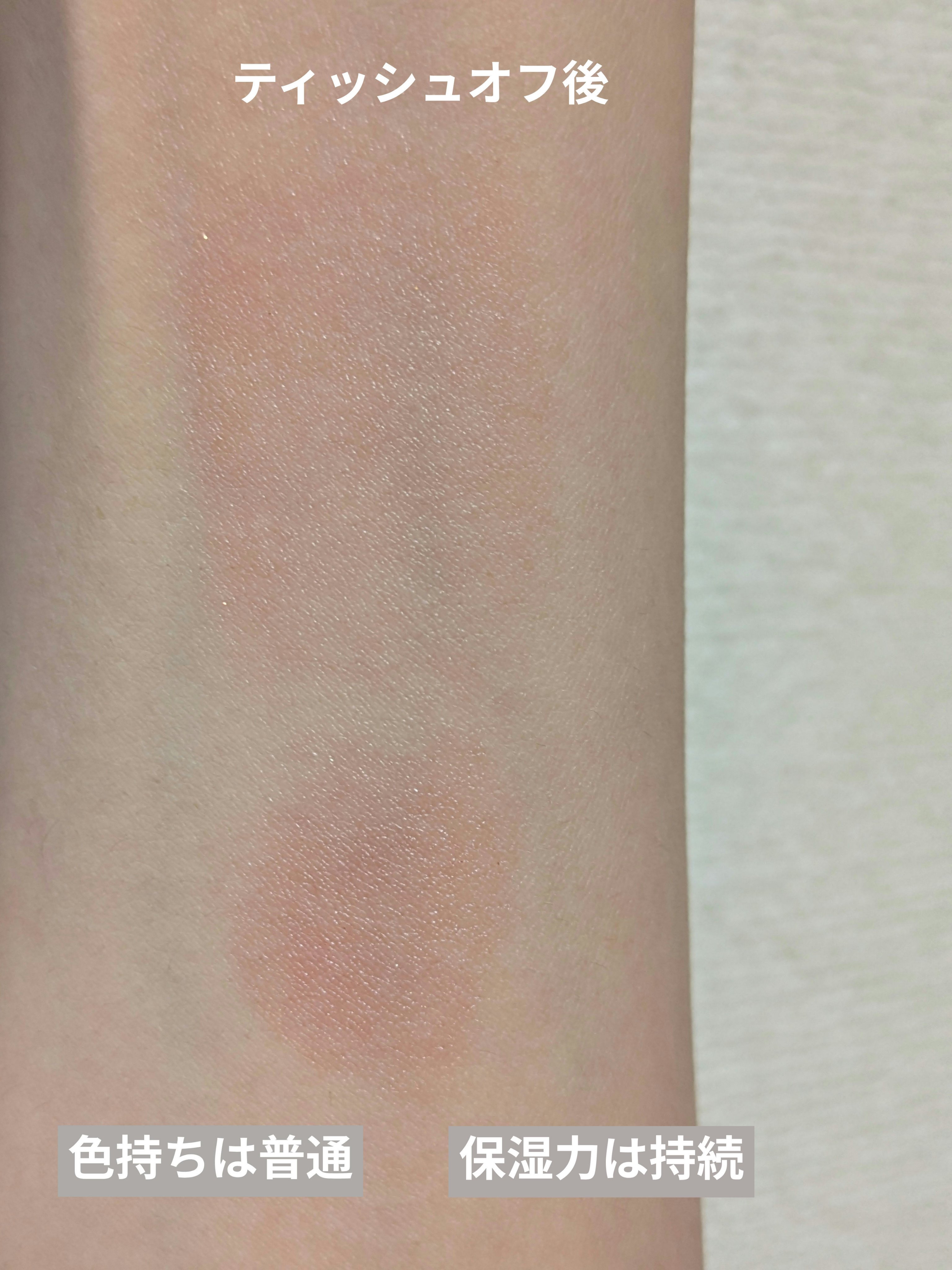 濃厚なテクスチャーでありながら透明感のある鮮やかな発色で、美しい輝きを放つ艶唇に。 塗り心地はリップバームそのもの!じんわり溶けて色が載る!色持ちはリップバームとしてはそこそこ❣️ 唇の潤いもキープできる!落ちたあとも唇の状態がいい🙆