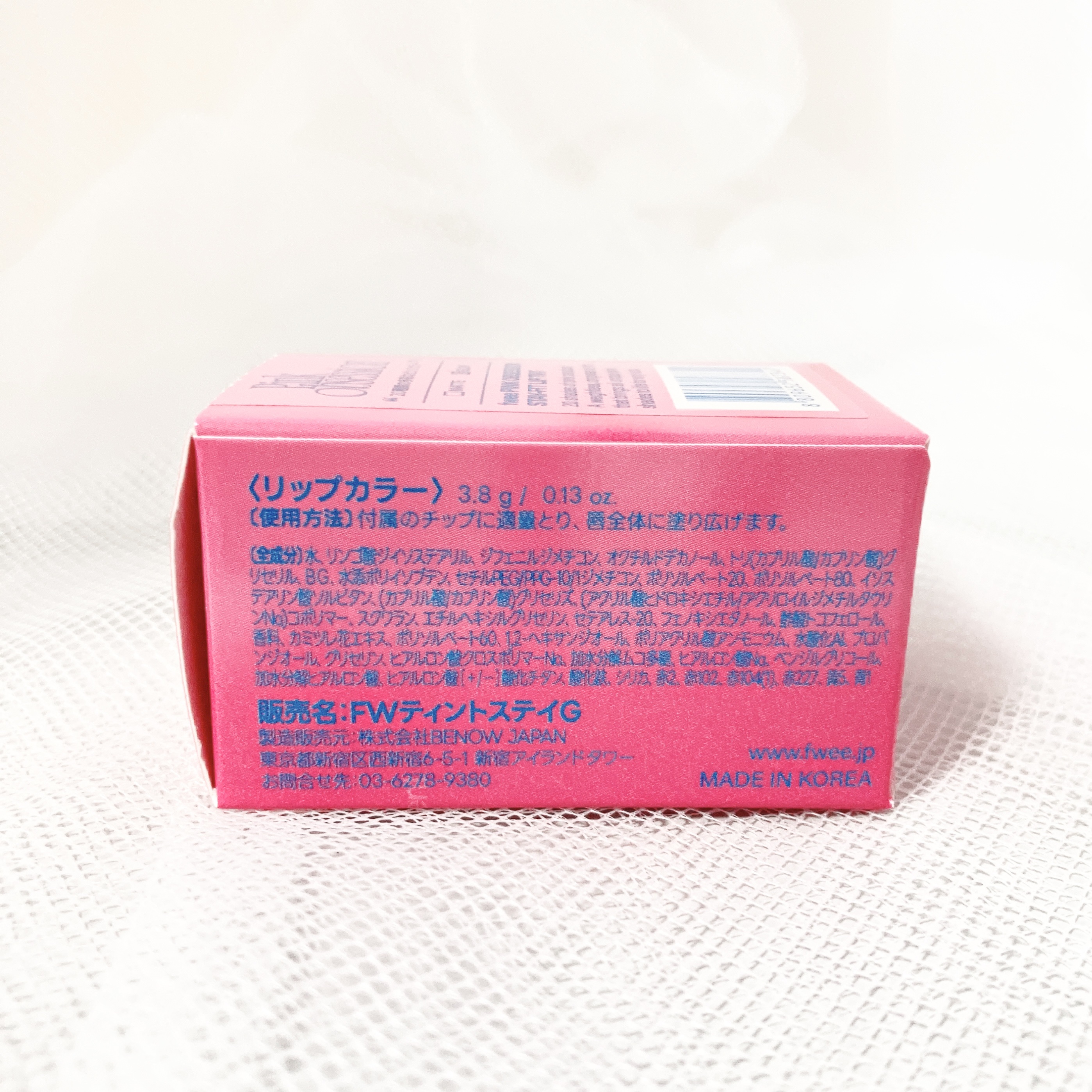 ーーーーーーーーーーーーーーーーfwee(フィー)ピンクオブセッションステイフィットティントG02ラベンダーピンクーーーーーーーーーーーーーーーーぽってりと可愛い容器にきゅん💓大きめのキャップですが意外と持ちやすく、つけやすい!みずみずしいつけ心地でさらっと上品なツヤ仕上がりのティントリップです。G02ラベンダーピンクは優しい発色でミルキーなツヤ感がとっても可愛いです…!(画像5枚目)ティッシュオフでも色と艶がほんのり残ります。(画像6枚目)クレンジングウォーターで拭き取ると、少しだけ色残りが。(画像7枚目)ティントリップですが色素沈着を心配しすぎなくても良さそうで、個人的には安心しました。#Qoo10メガ割