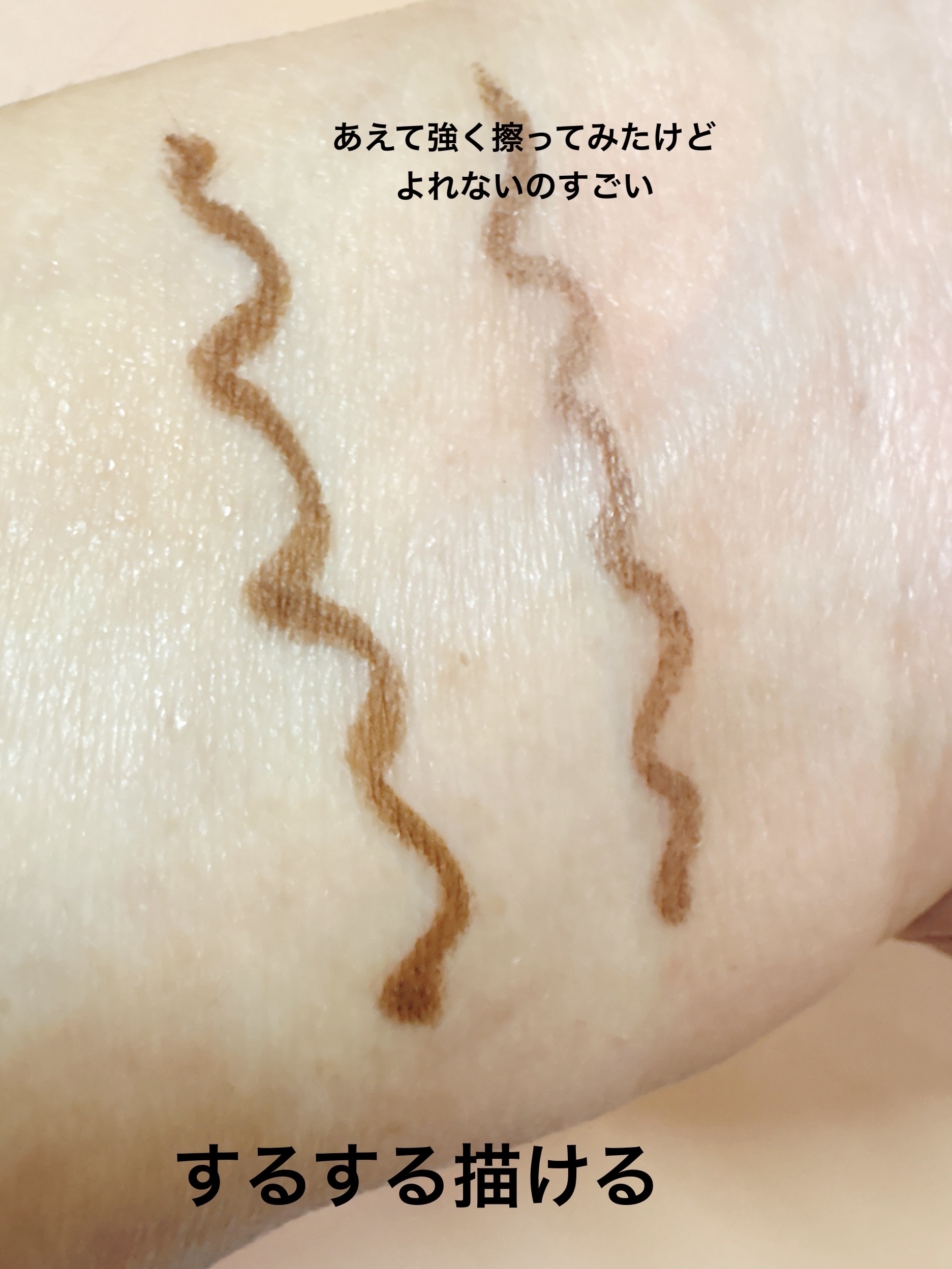 01ナチュラルブラック/02ディープブラウン楕円芯で、太くも細くも描きやすい設計だそう。するするとなめらかな描き心地が特徴的です😊高密着でにじみにくくパンダ目になりにくいそうです!わたしに合っていました🍒くっきり発色がよくて、お気に入りです。下まぶたなどにはぼかしてもかわいいですね(*^^*)