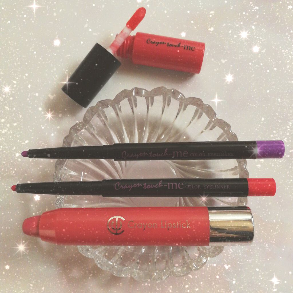 懐かしの100均アイテム!クレヨンタッチミー!昔、一時的に流行っていたような気もします。地味に使っているから残留中(笑)もちろん、現役としても使えます。上から、、TMベルベットリキッドルージュポピーレッドなんとなく可愛いと思って買った❢一応マットっぽいつけ心地というか、トントンと唇にのっけていく感じ。ジュワッとした風にも使えます。若干甘い香りもする。でも、なんていうか中身が少なく感じました…(´・ω・`)TMカラーアイライナーラベンダーパープルローズピンクこれはもう、カラーメイクの走りというか。ユニバとか、、ユニバとかでとにかく使ってたwハロウィンとかで。春シーズンは、パープルメイク&ピンクメイクに、また復活しそうな予感。。ACクレヨンリップ05サーモンピンクつけてるか、つけてないか分からないぐらいの色味。何かとクレヨンリップって便利!でもちょっと蓋にヒビが…(´・ω・`)今って100均コスメが、とっても充実してて凄いと思うなぁ❢使用感はとにかく使って試すべしですね💜
