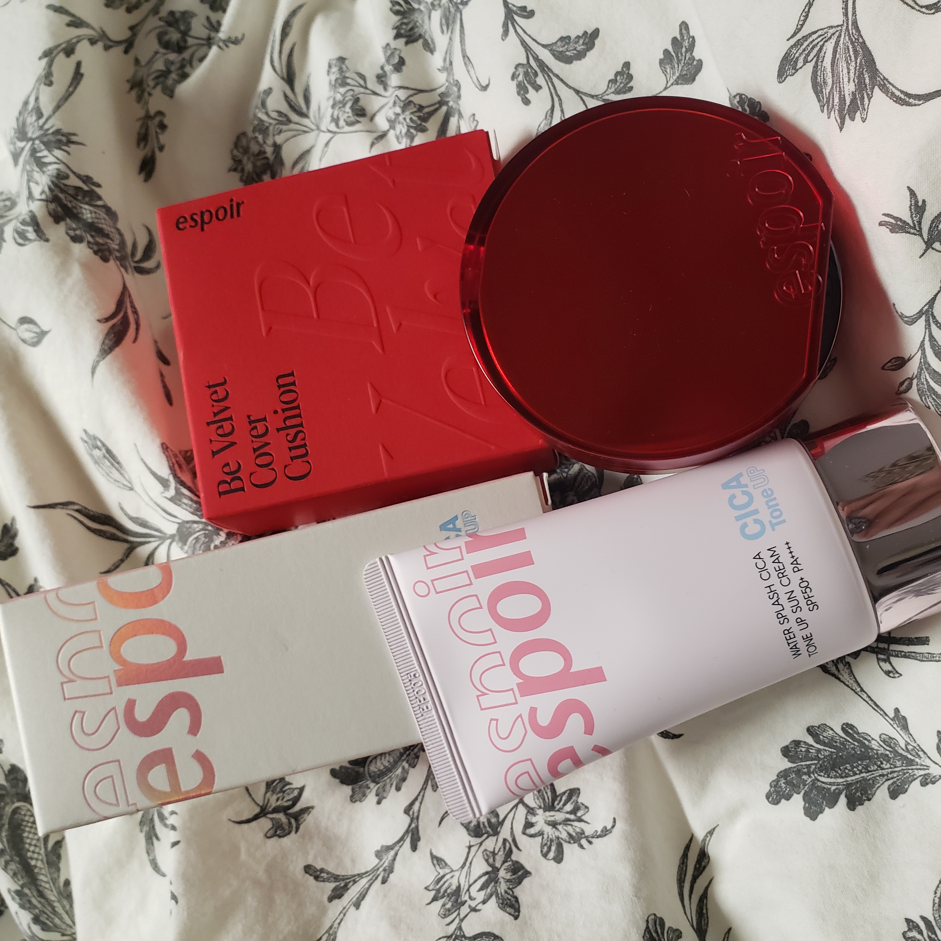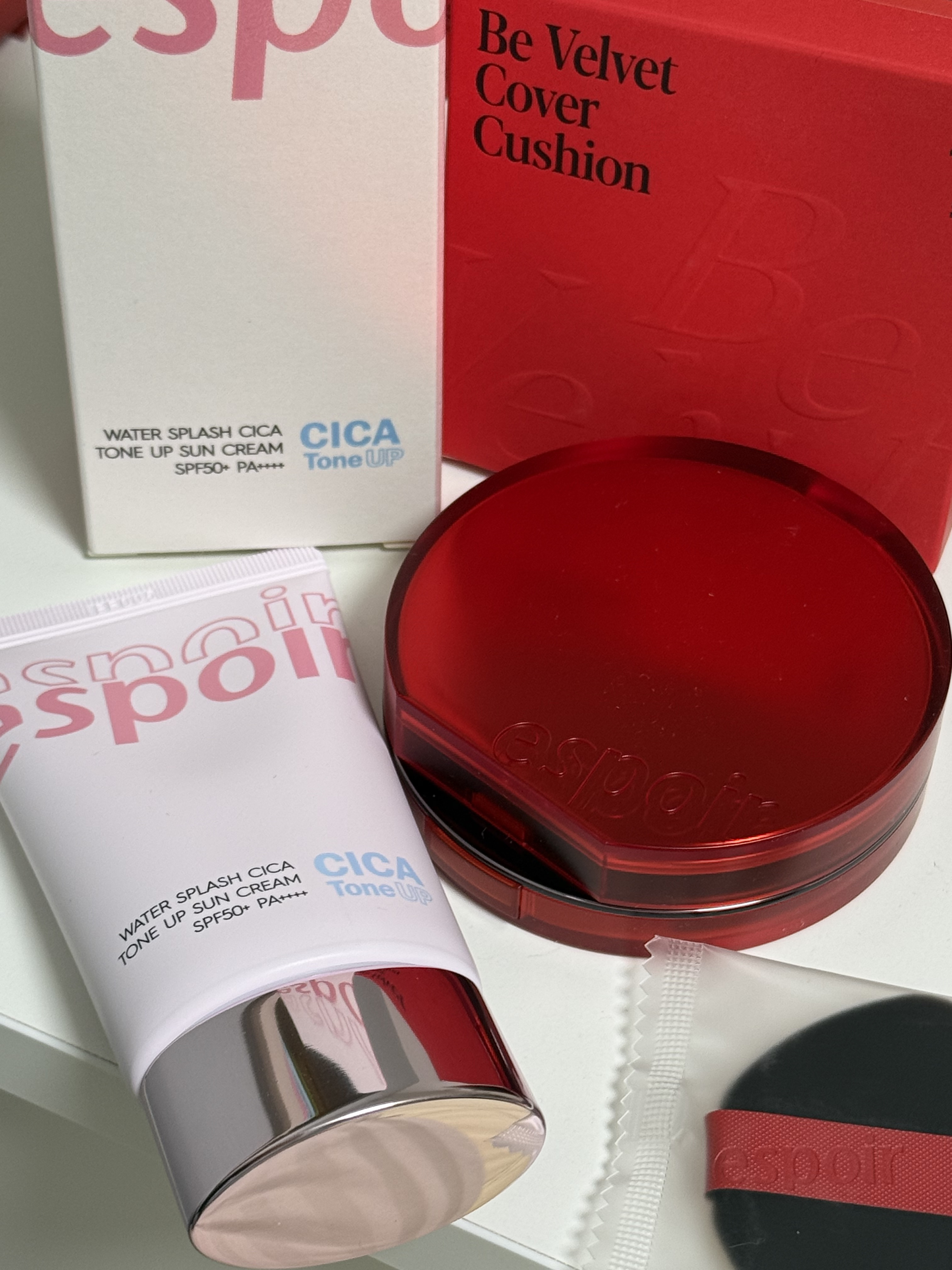 espoir【ウォータースプラッシュシカトーンアップクリーム】肌にやさしい透明感トーンアップUV◎ピンクトーンアップいちごミルクに透明感を一滴足したようなナチュラルなベビーピンクカラー🍓🥛高屈折率オイル×乱反射パウダーで自然なツヤとつるんとした美肌を演出◎優れたシカ鎮静ケアツボクサエキス+緑茶水+ヒノキ水+ティーツリー葉エキス配合刺激を受けた肌を落ち着かせ、肌バリアを強化◎水分クリーム級のうるおい感ソフトな水分ジェルテクスチャーが肌に水分膜を形成なめらかでしっとり、スキンケア感覚の塗り心地◎72時間低温コールドブリュー工法低温でじっくり抽出したフレッシュなツボクサエキスを使用クーリング効果&高保湿を同時に実現〈使ってみた感想〉お肌がパッと明るくトーンアップ!!少量でも伸びが良かったです◎水分感があり肌に塗っても乾燥など感じずしっとりお肌に✨自然なツヤが出せるので嬉しいです♡これ1本で仕上げる時もあれば、プラスでファンデを重ねてもすごく綺麗に仕上がりました✨【ビーベルベットカバークッション】ベルベットのように柔らかく薄いテクスチャーが肌にぴたっと密着!長時間くずれないセミマット肌を叶えるクッション✨◎100時間超密着エクストリームカバーアモーレパシフィック特許技術トリプルレイヤーフィルムフォーマー採用NMFカバーパウダーで欠点を均一にカバー◎軽さ×ダークニングゼロ従来比40%軽量化パウダー息苦しさゼロ&時間が経ってもくすまない◎乾燥知らずのコンフォートベルベット低分子ヒアルロン酸2倍配合弾力ペプチド&アルギニンで保湿・バリア強化◎エクストリームクリーン処方ヴィーガン認証皮膚刺激テスト・ブルーライトカットテスト済20種フリー&セフォラクリーンPhase4クリア〈使ってみた感想〉軽い付け心地で塗った後ふわっとベルベットな仕上がりになります!素肌感というよりはメイクしたって感じになりますが毛穴や赤みをしっかりカバーしながら綺麗な仕上がりにしたい方におすすめだと思いました♡乾燥も感じず程よいツヤも出ます✨