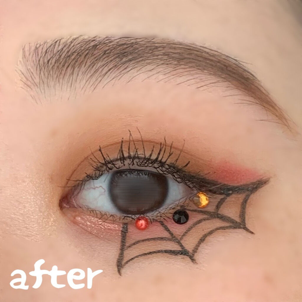 今回はハロウィンに使えるアイメイクをやってみました!傷メイクだと買い足さないといけないのが面倒臭いので😅アイライナーをメインに蜘蛛の巣風メイクをしてみました。15分~20分ぐらいで出来ます!アイホールはマットブラウンをグラデーションにして涙袋は赤で闇感を出す。目尻アイラインは太く跳ね上げてそれを軸に蜘蛛の巣風にラインを描く。(涙袋の上はアイラインがガタガタするので皮膚を引っ張りながら描くと🙆♀️)是非ハロウィン🎃に!!#ハロウィンメイク#アイライナー