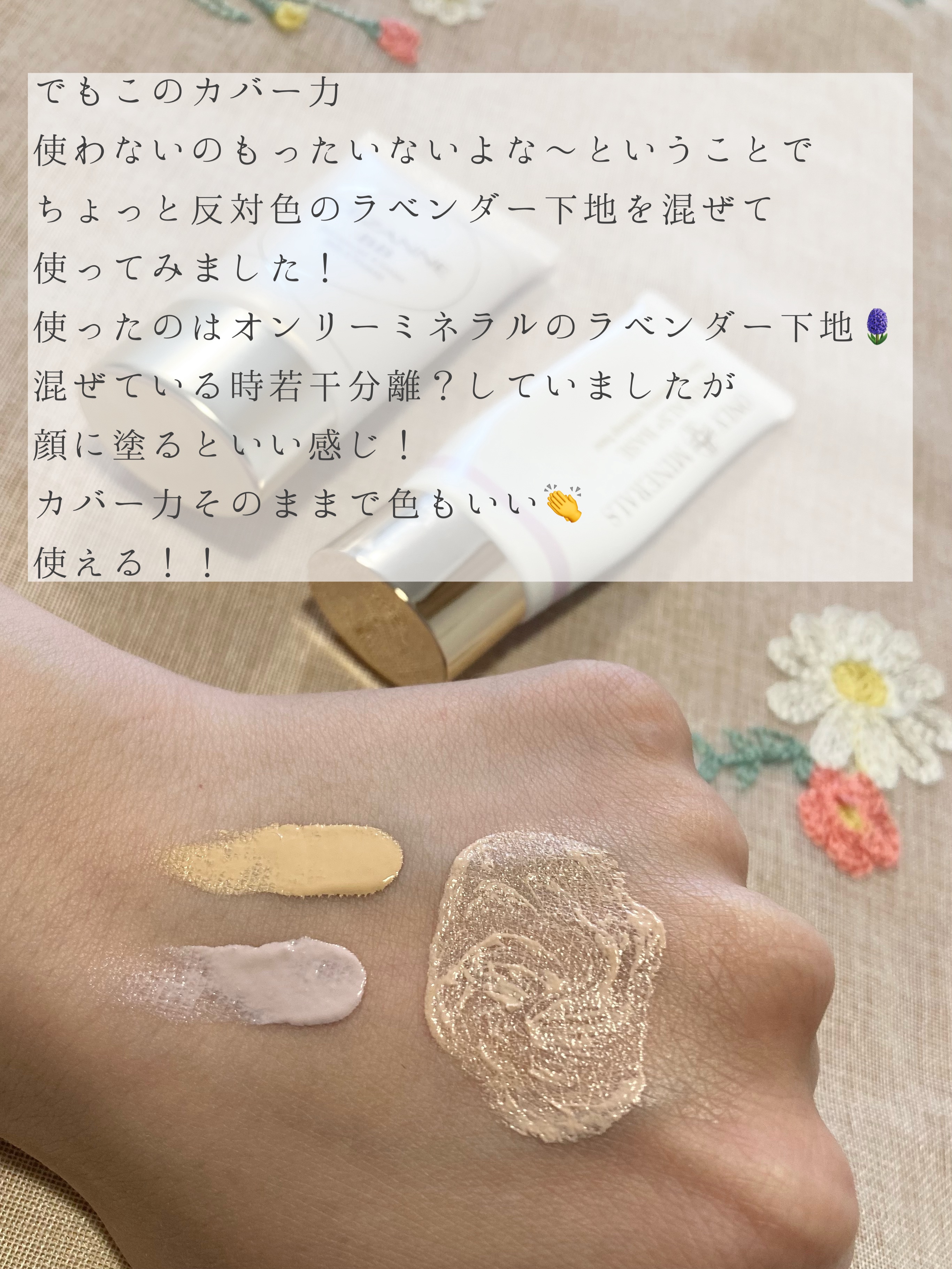*:*:*:*:*:*:*:*CEZANNEミネラルカバーBBクリーム00明るいベージュ系税込¥748円*:*:*:*:*:*:*:*リニューアル前の商品でごめんなさい🙇♀️年齢を重ねるごとに気になる肌の色むらやシミ😖普段はノーファンデでもいいけどちゃんとカバーしたい日もありますよね🤔今回は石鹸落ちでカバー力がすごいというセザンヌのBBクリームをレビューします🫶とにかくカバー力がすごい…!本当に1000円以下なの?これコンシーラーじゃないよね?というくらいハイカバー👏けど黄味も強い!😂首と色違う〜ベタ塗りするとちょっと危険です⚠️でもこのカバー力使わないのもったいないよな〜ということでちょっと反対色のラベンダー下地を混ぜて使ってみました!使ったのはオンリーミネラルのラベンダー下地🪻混ぜている時、若干分離?していましたが顔に塗るといい感じ!カバー力そのままで色もいい👏リニューアル後はどんな色かちょっとわからないのですが、もし黄味が強くて使えないという方、ラベンダー下地を混ぜて使うことおすすめです🥰#セザンヌ#カバー力#BBクリーム#石鹸落ち#ラベンダー下地