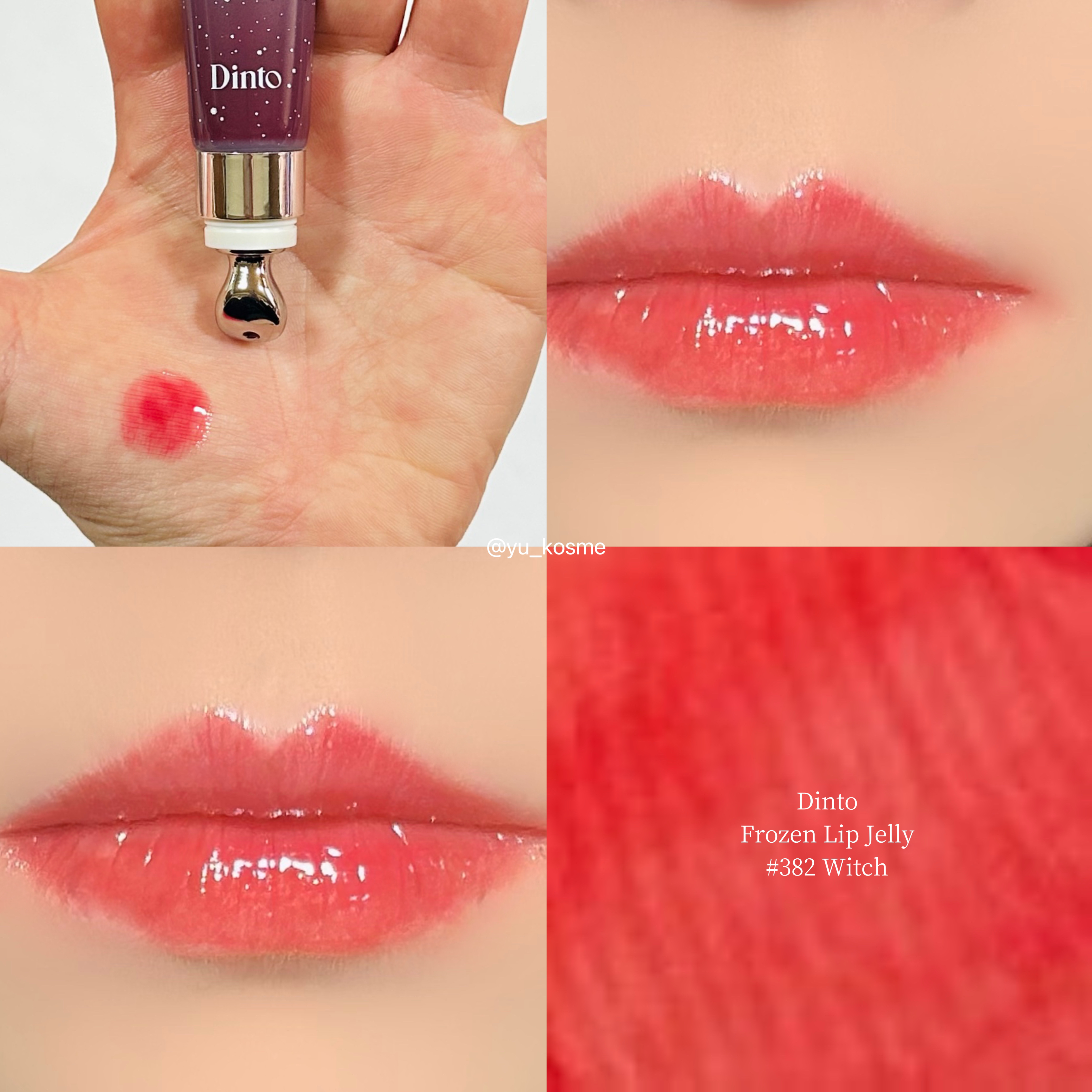 Dinto フローズンリップゼリー382 Witch#Qoo10メガ割で購入したDintoのグロスチップ部分がひんやり冷たく拭き取りやすいチップ✨382のウィッチ、アサイーフリーズカラーはしっかり発色する鮮やかカラー🩷色が濃いめなのでグロスな...