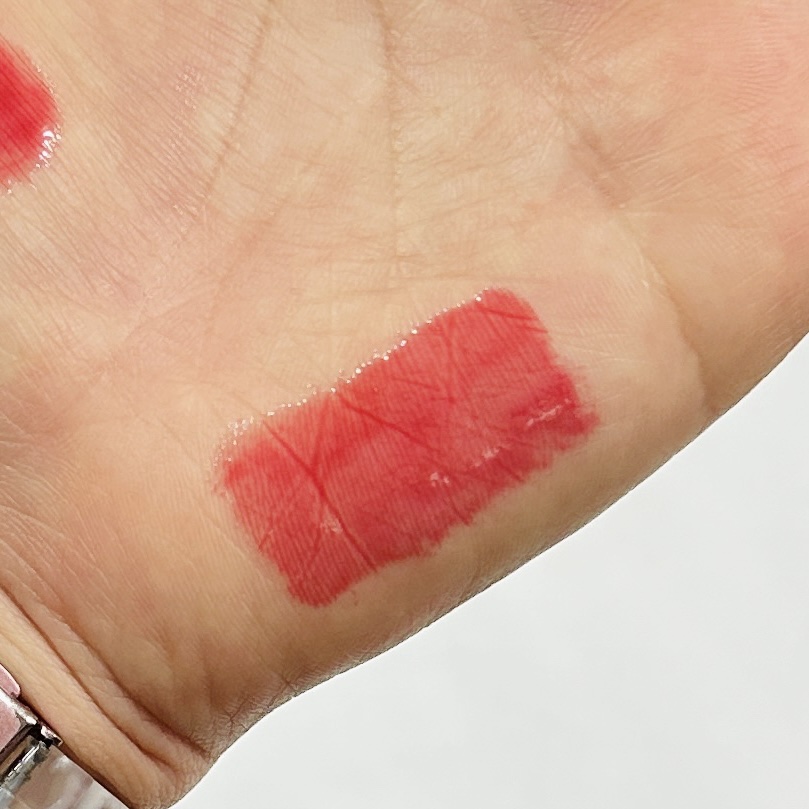 ピンクみが強い鮮やかな赤リップ❤️ 青すぎず、深すぎずな印象で、私好みの発色が濃いリップでした☺︎ もっちりした粘度のあるテクスチャーで、ちゅるんちゅるんに仕上がります🫧 塗った瞬間はスースー冷たい感じ! グロスみたいな感じなので色持ちは良くないけど、とにかくツヤ•ボリュームを出したい時におすすめ