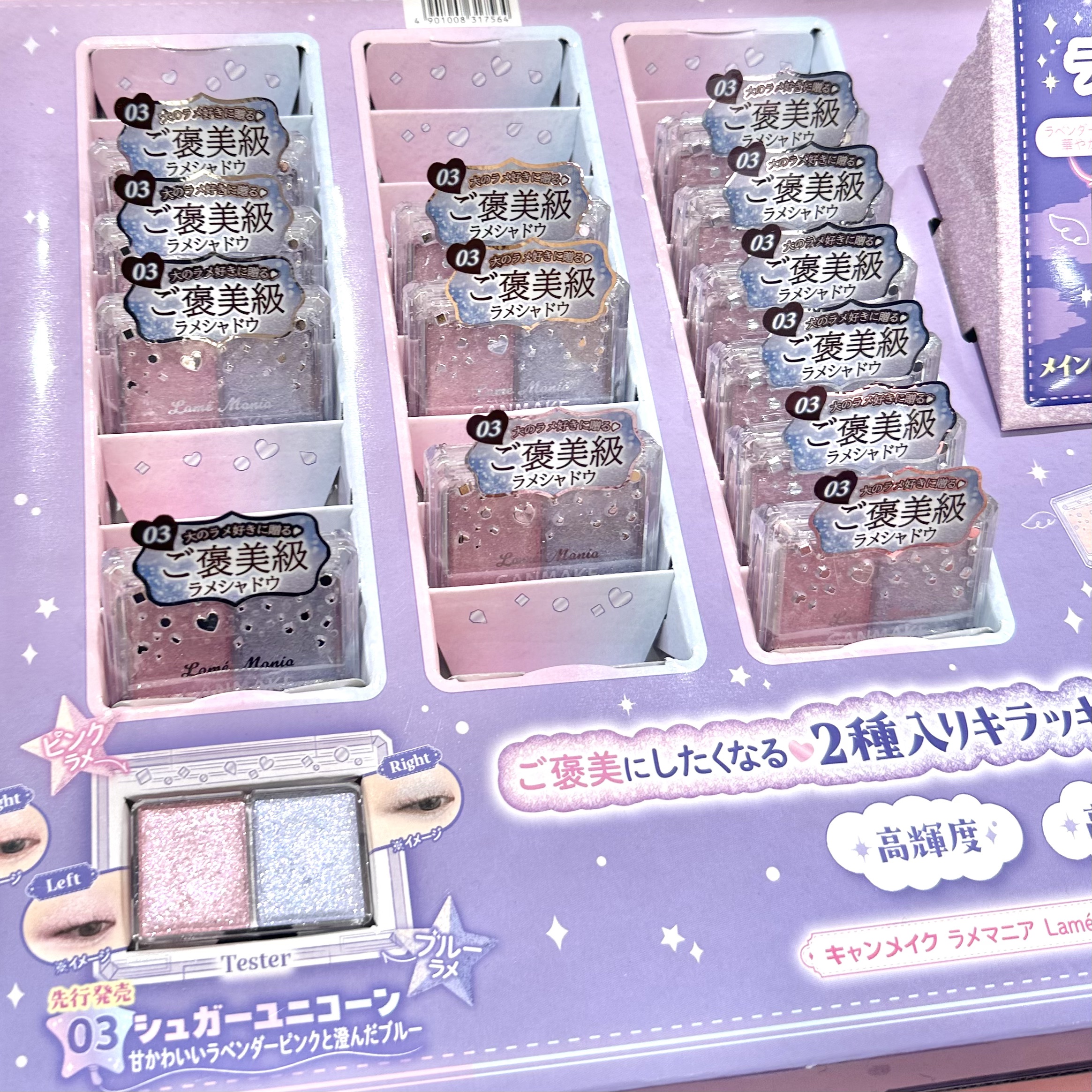 愛すべきラメ、お値段もお買い得CANMAKEラメマニア02ピンクプードル¥770(税込)LIPSSHOP購入品ラメ好きさん必見プチプララメシャドウ2色入りで高輝度の「銀被覆パール」を配合。まるで発光しているかのように輝くラメシャドウ。多色の大...