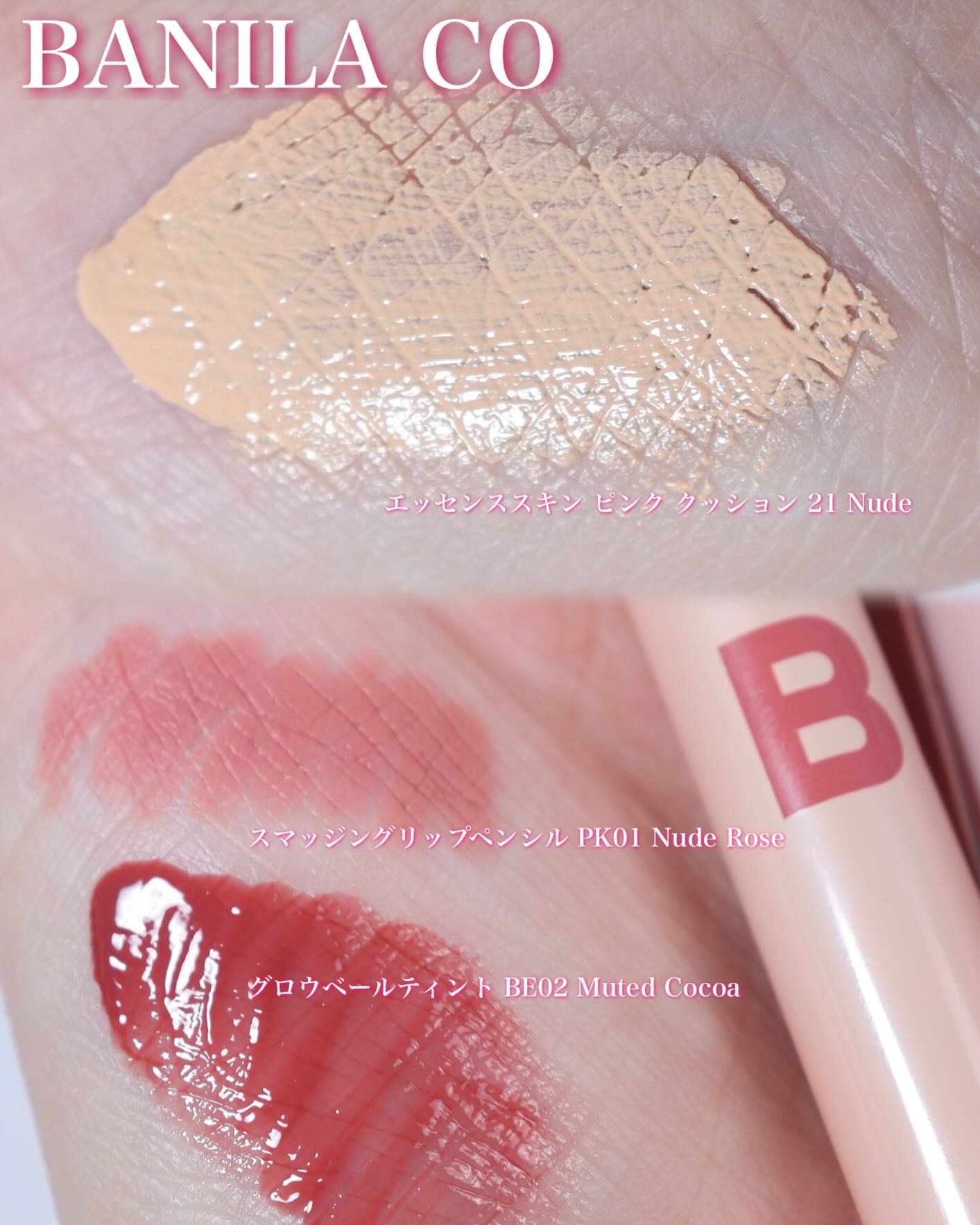 \迷ったらこれ🤍/バニラコ人気アイテムまとめ@banilaco_japan✔️ピンククッション21Nude超スリム密着で毛穴・くすみをふんわり高カバー❣️重ねてもヨレにくく、メイク直し後もつるんとしたツヤ肌に✨乾燥しにくいから大人肌にも◎バニラコのクッションはカバー力高いから私みたいにニキビ跡あったりする人にもおすすめだよ‼️✔️スマッジングリップペンシルPK01NudeRose描いてぼかすだけで今っぽリップ完成✨ふんわりグラデで簡単にオーバーリップ完成👄なめらかな描き心地&落ちにくさで、デイリー使いに大活躍💄✔️グロウベールティント🆕薄膜なのにちゅるんと水膜グロウ!唇に溶け込むミュートカラーとツヤ感で、単色も重ね塗りも可愛い🤍ツヤ・保湿・色持ちのバランスが優秀🥺✨どれも失敗しにくい名品揃いだからまだバニラコ使ったことない人にもおすすめ🫶#PR#バニラコ#ピンククッション#スマッジングリップペンシル#グロウベールティント