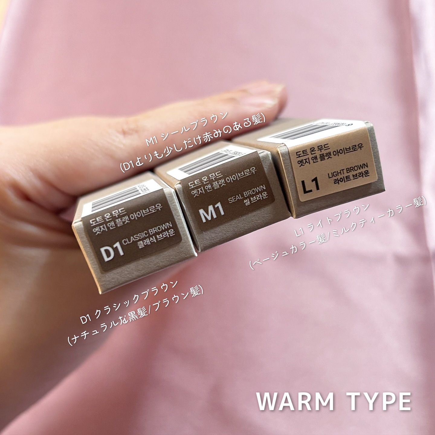 2025.2.1発売の新作アイブロウペンシル❣️ ドット オン ムードエッジ&フラットアイブロウ (全6色) 3色とも柔らかい発色で失敗しずらい印象。 D1は濃そうに見えてそんなに濃くなく万人受けしそうなカラー。 薄くも描けるし重ねれば濃く描くこともできます!! ブラシ付きなのでぼかしもできる!