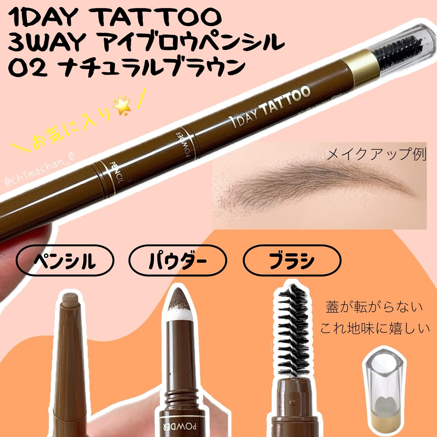 1DAY TATTOOのアイブロウがリニューアル🤎 2WAYリキッドは自眉のような立体美眉に✨️ ナチュラルブラウンは明るめの髪にも合わせやすかった☺️ スマッジプルーフで1日眉毛消えなかったです🫶🏻