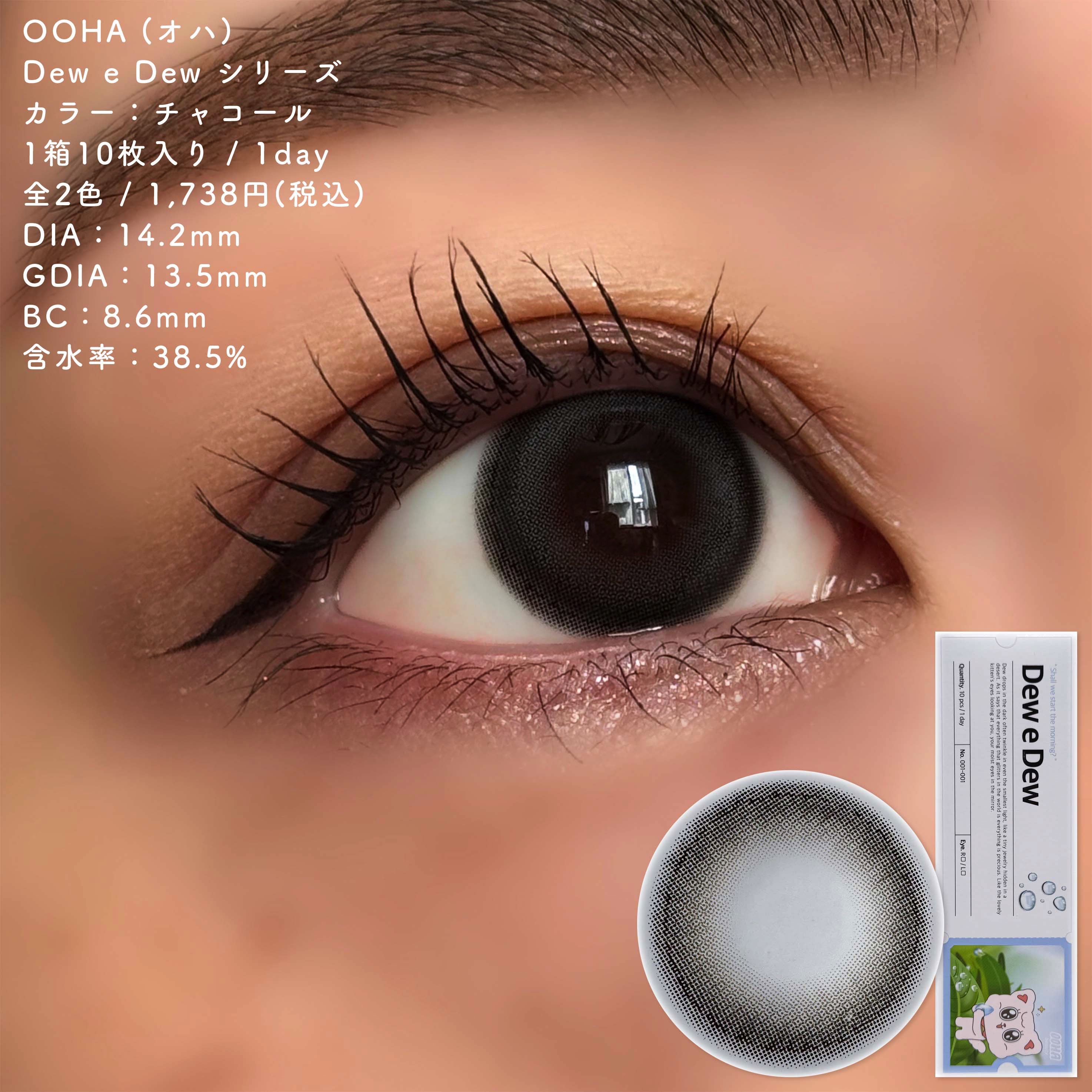 憧れの女神盛れが叶う アイドルっぽ韓国カラコン【OOHA (オハ)】が新登場🎉✨ うるちゅるドーリーな '生ツヤレンズ'のDew e Dewシリーズ「チャコール」をレポ📝 着色直径は13.5mmと絶妙なサイズ感でしっかり盛れるのも嬉しい〜☺️🎀