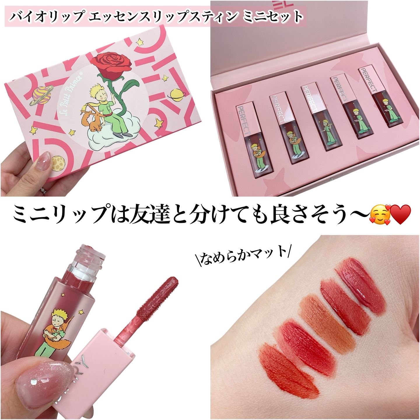 ロマンチックな星の王子さまコラボで、パケに大変身✨ どのカラーもチョコのようなこっくり発色が可愛いリップでした🍫 ブルベ冬の私は使いこなすのが少し難しかったので、全体的にイエベさん向きのお色展開だと感じました!